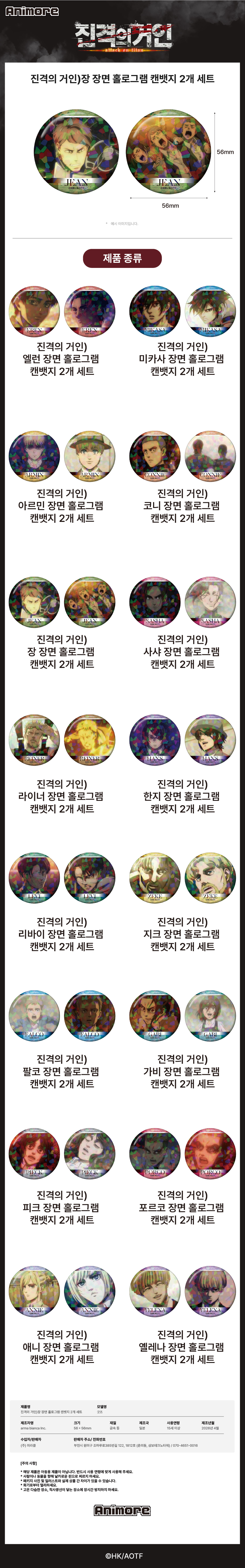 [예약배송] 애니모어 진격의 거인 장 장면 홀로그램 캔뱃지 2개 세트