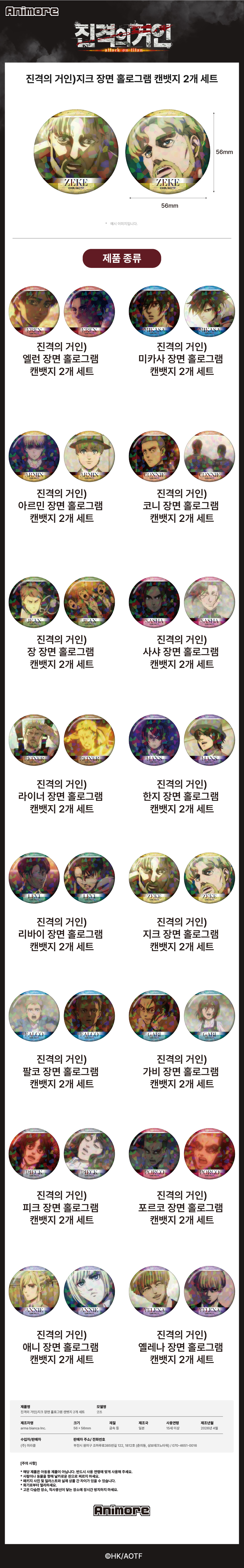 [예약배송] 애니모어 진격의 거인 지크 장면 홀로그램 캔뱃지 2개 세트