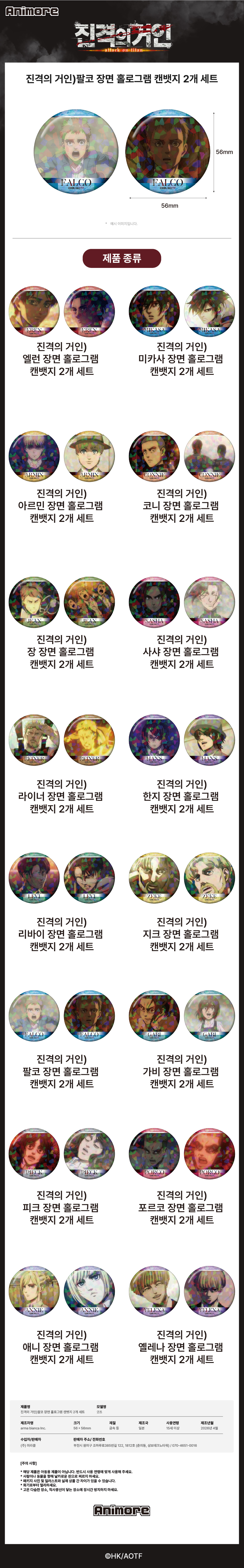 [예약배송] 애니모어 진격의 거인 팔코 장면 홀로그램 캔뱃지 2개 세트