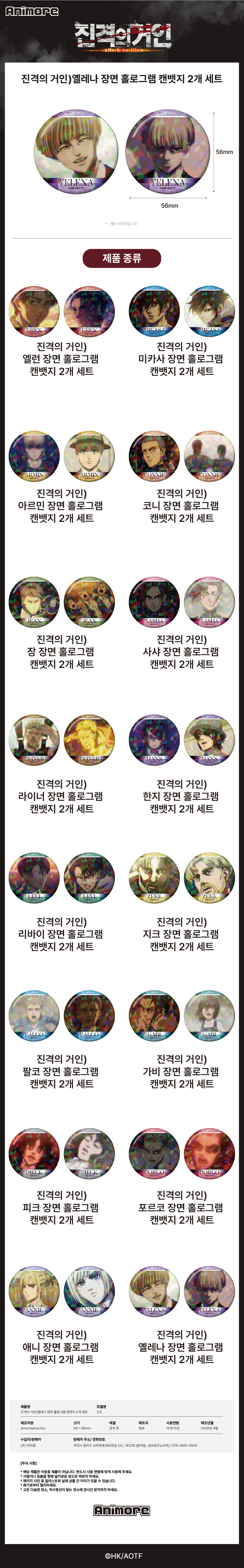 [예약배송] 애니모어 진격의 거인 옐레나 장면 홀로그램 캔뱃지 2개 세트