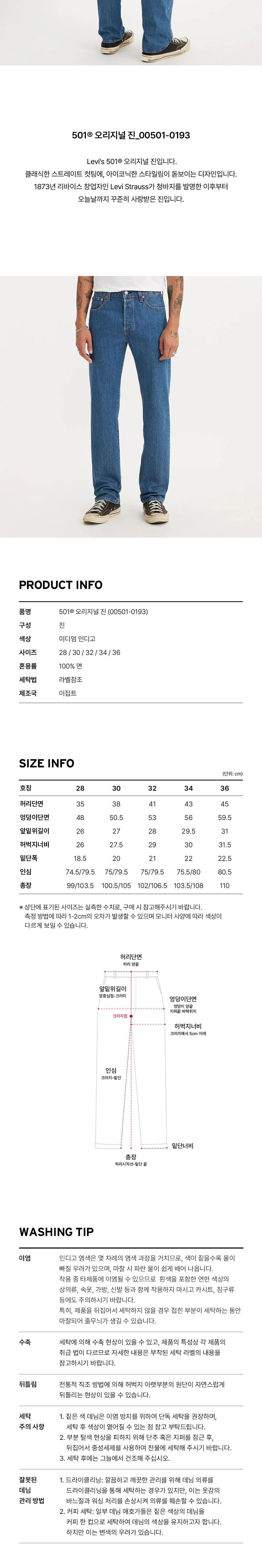 Levi's 501 오리지널 진입니다. 클래식한 스트레이트 컷팅에, 아이코닉한 스타일링이 돋보이는 디자인입니다. 1873년 리바이스 창업자인 Levi Strauss 가 청바지를 발명한 이후부터 오늘날까지 꾸준히 사랑받은 진 입니다.