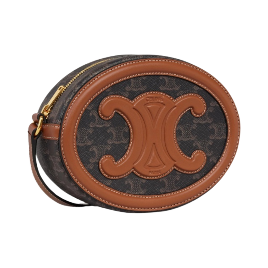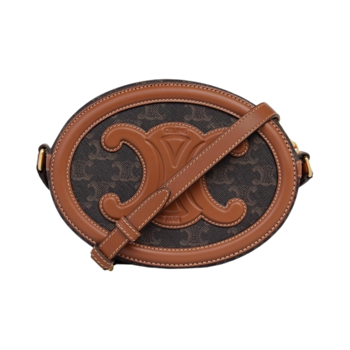 Celine Oval Bag Cuir Triomphe in Triomphe Canvas Calfskin Tan