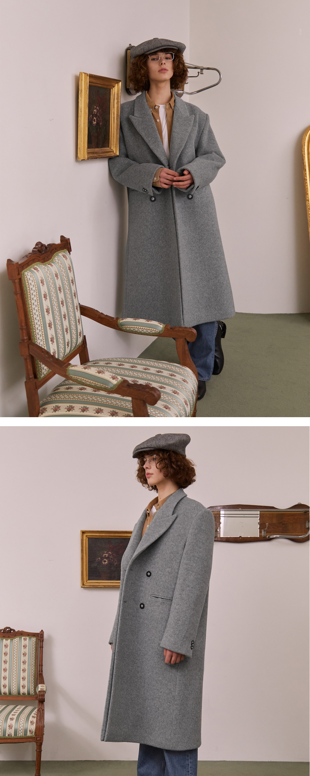 [KREAM 단독] 에스티유 오버핏 더블 브레스티드 캐시미어 코트 그레이