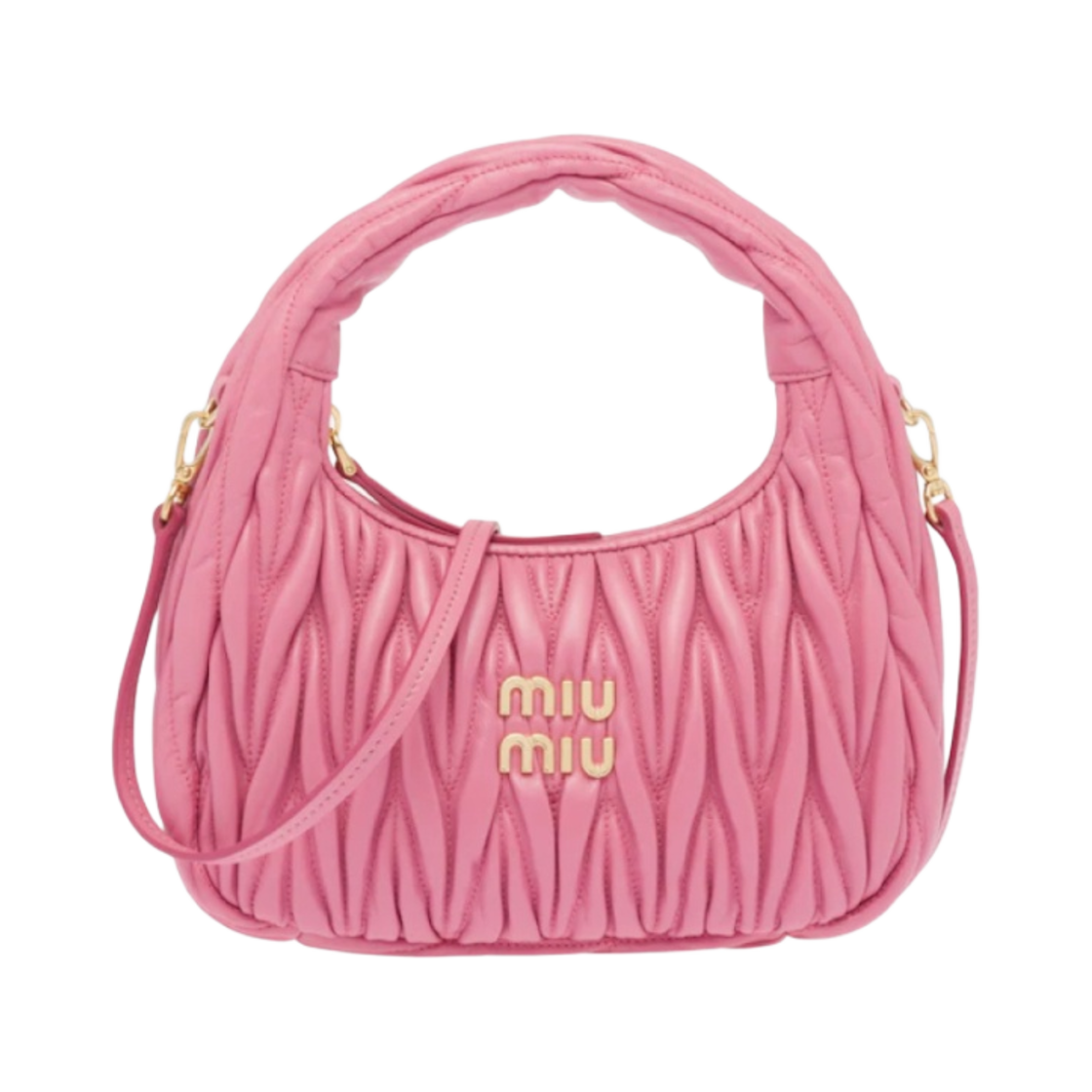 Miu Miu Wander Matelasse Nappa Leather Mini Hobo Bag Begonia Pink
