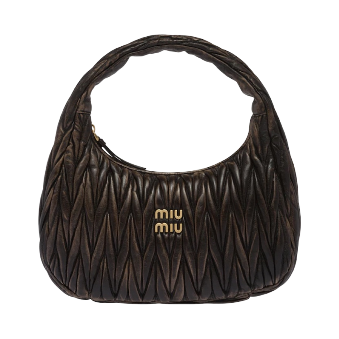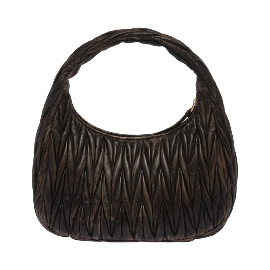 Miu Miu Wander Matelasse Nappa Leather Hobo Bag Sand Coffee