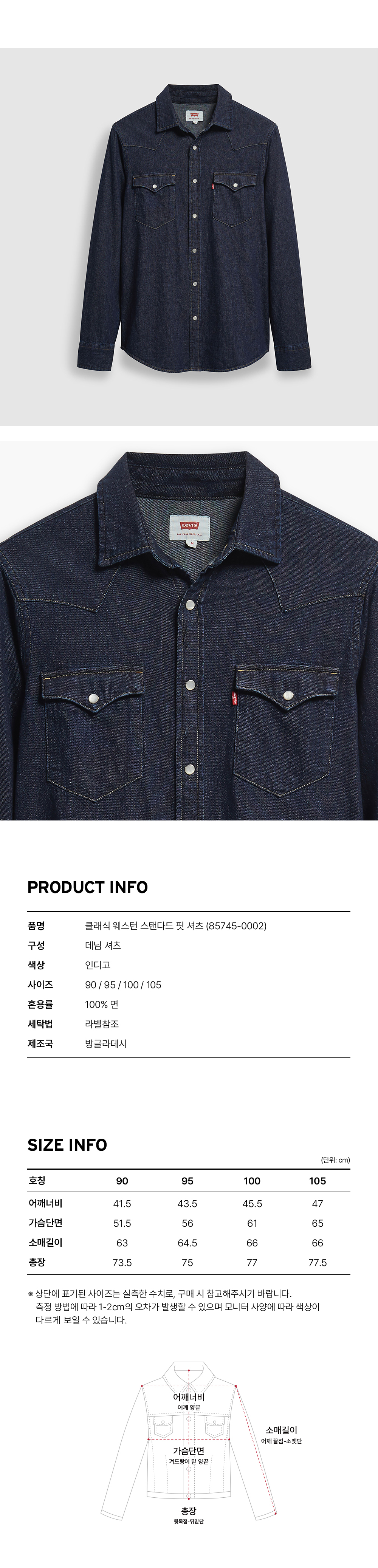리바이스 스탠다드 핏 클래식 웨스턴 셔츠 인디고