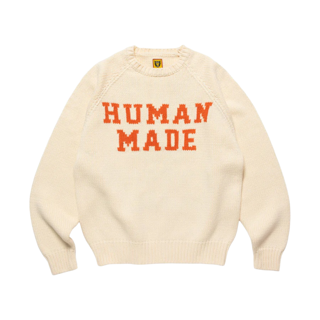 휴먼 메이드 베어 래글런 니트 스웨터 화이트