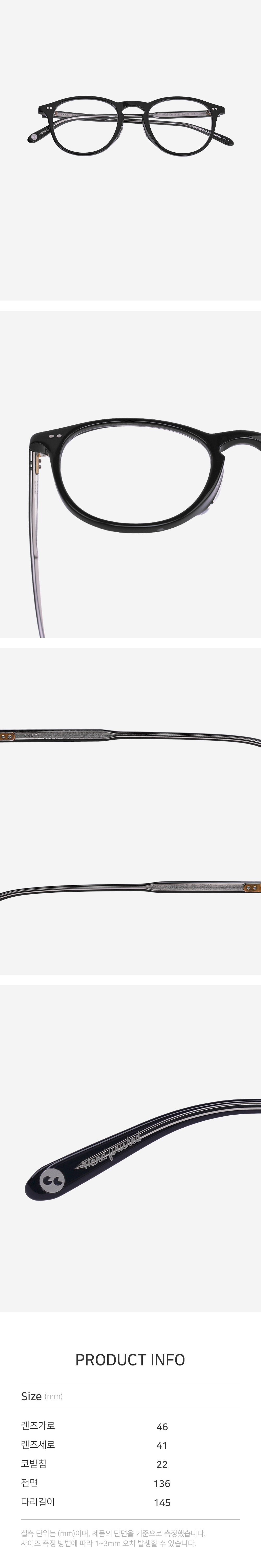 *안경테에 장착되어있는 렌즈는 프레임의 형태의 변형을 막기 위한 플라스틱 데모렌즈입니다.