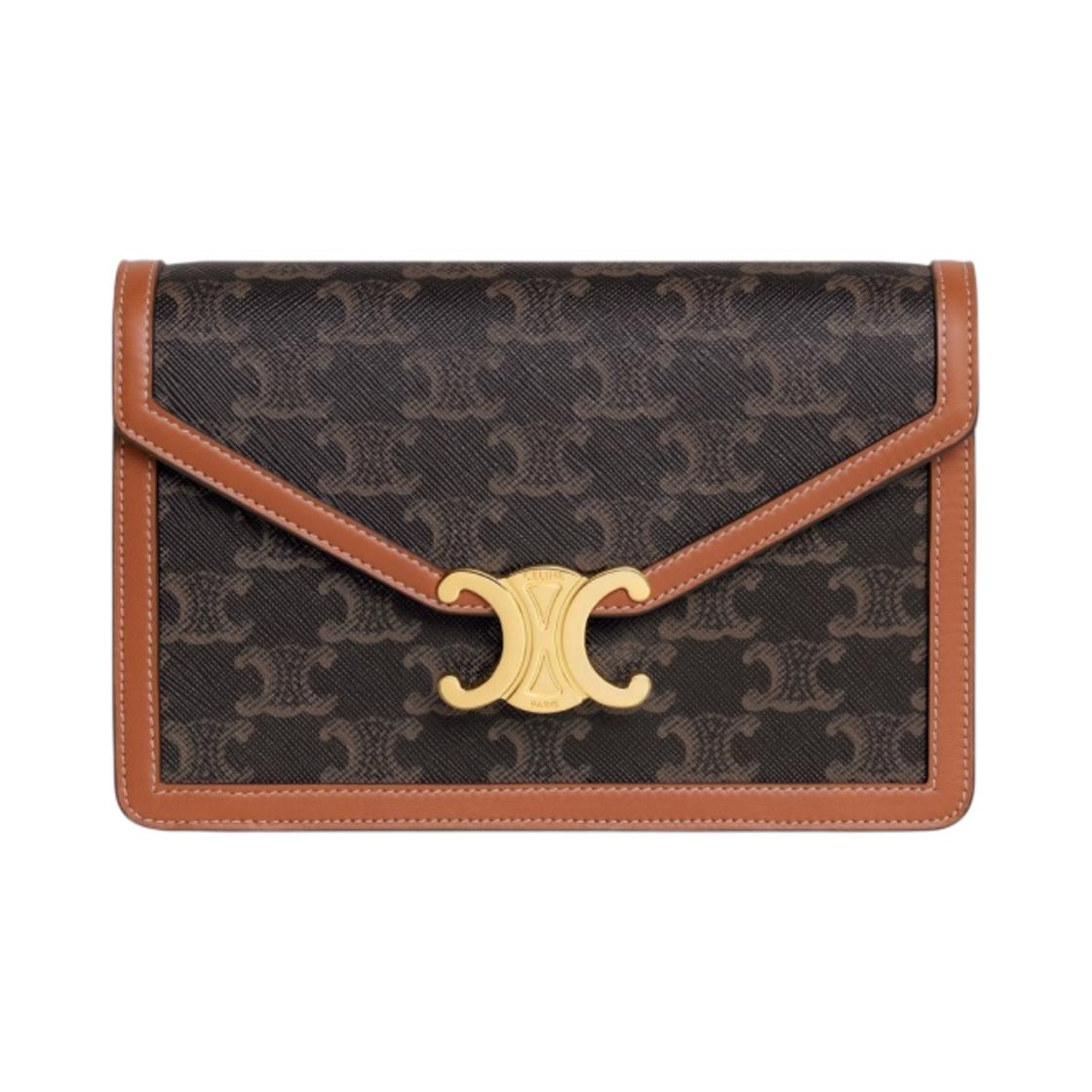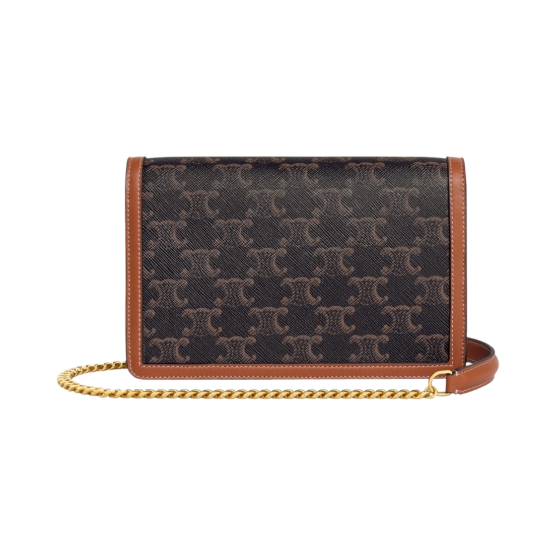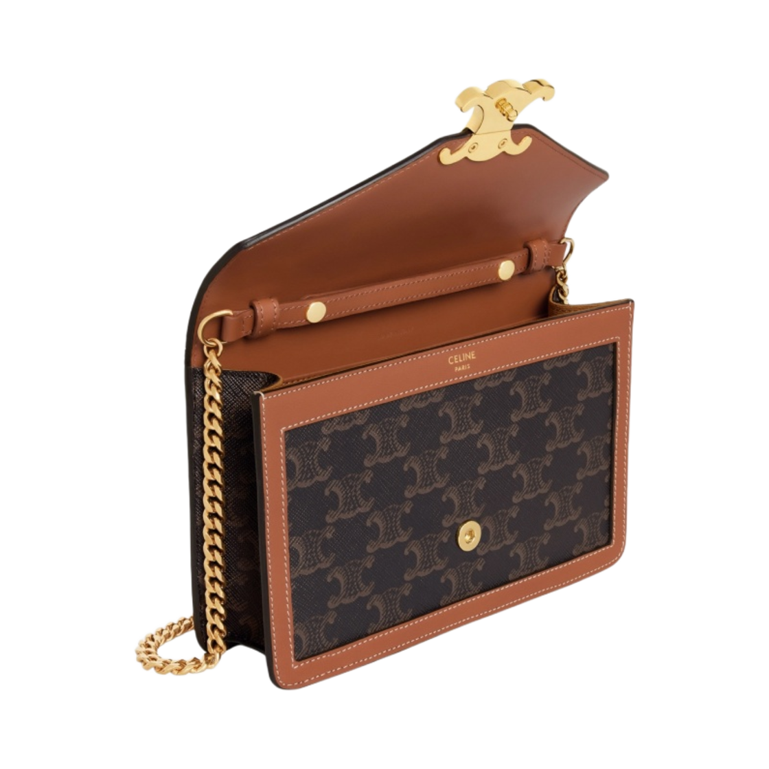 Celine Wallet On Chain Margo in Triomphe Canvas Calfskin Tan