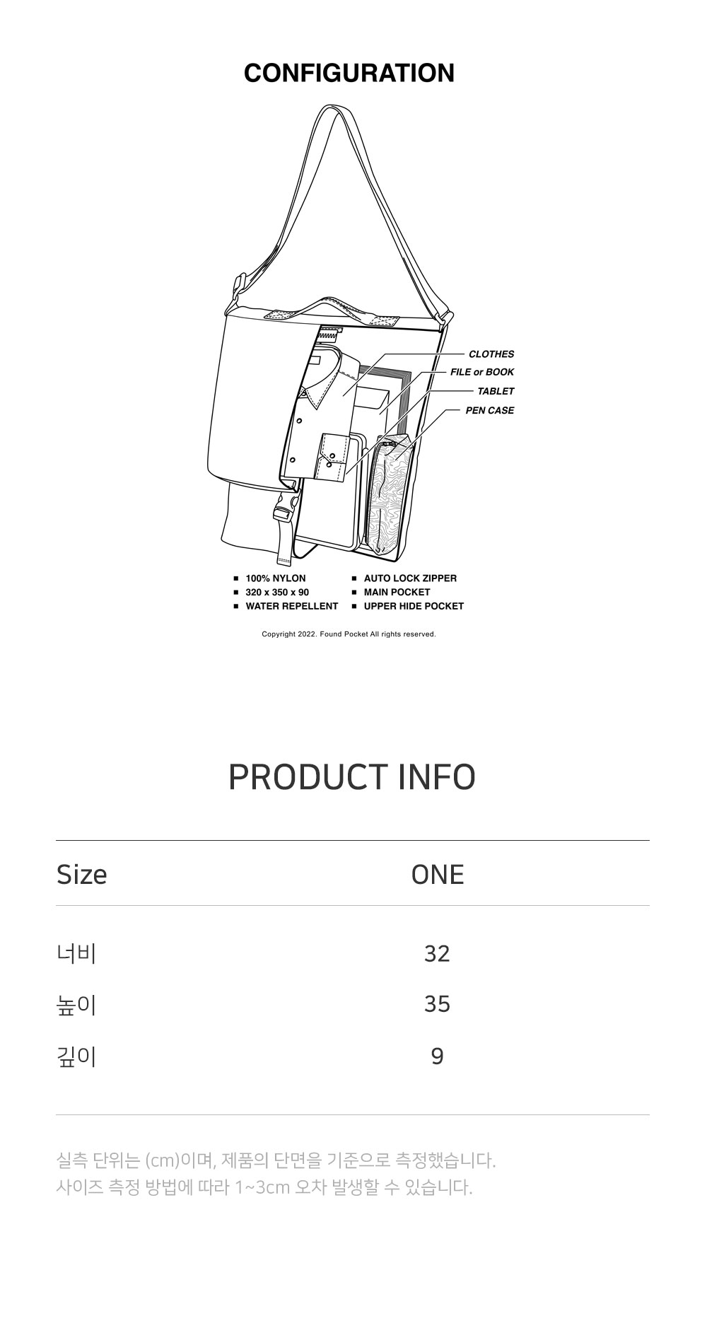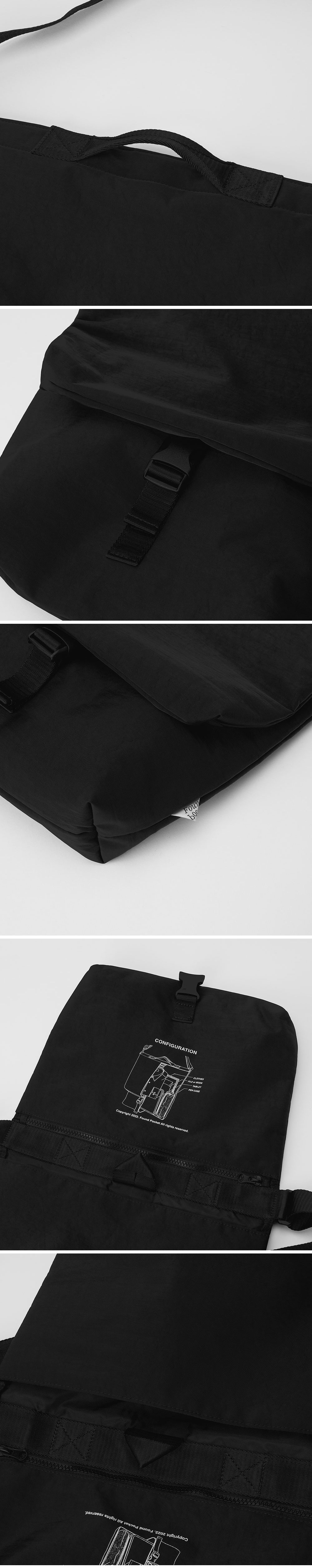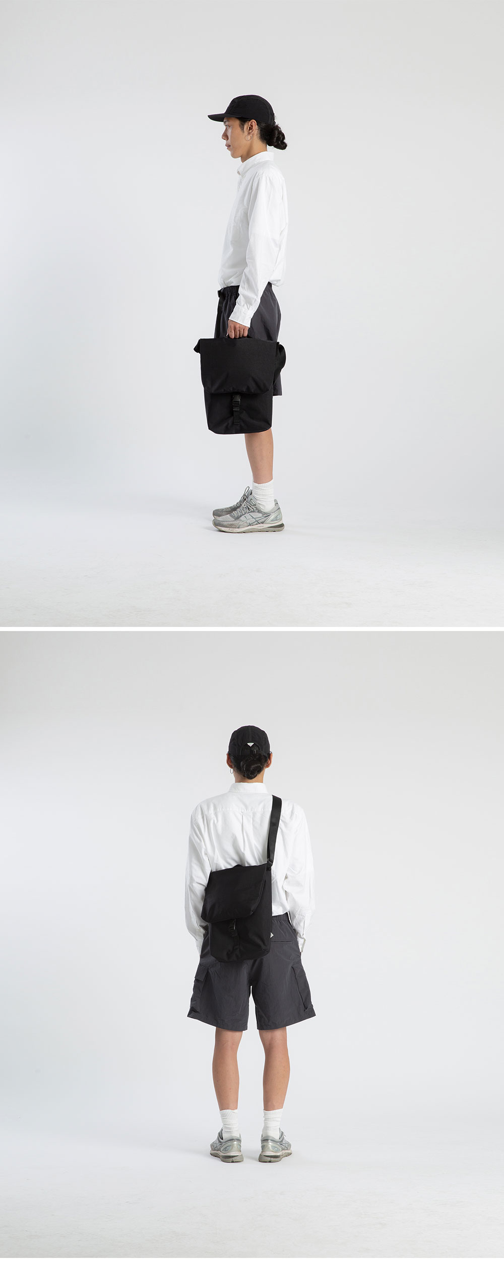 PRODUCT: CROSS BAG COLOR: BLACK SIZE: W:32cm L:35cm D:9cm OUTSHELL: NYLON 100% LINING: NYLON 100% 미니멀 디자인 슬링백. 덮개 지퍼 포켓. 넉넉한 하단 메인 포켓. 버클을 이용한 여밈 방식. 어깨 끈 또는 핸들 사용. 발수 가공 된 고밀도 나일론 원단 사용. ****해당 제품은 지퍼 폴리 백에 포장되어 발송됩니다. 지퍼 폴리 백 특성상 제품에 파우더 가루가 묻어날 수 있으며 제품에 묻은 파우더 가루는 살살 털어주시면 사라지니 구매 시 참고 부탁드립니다.