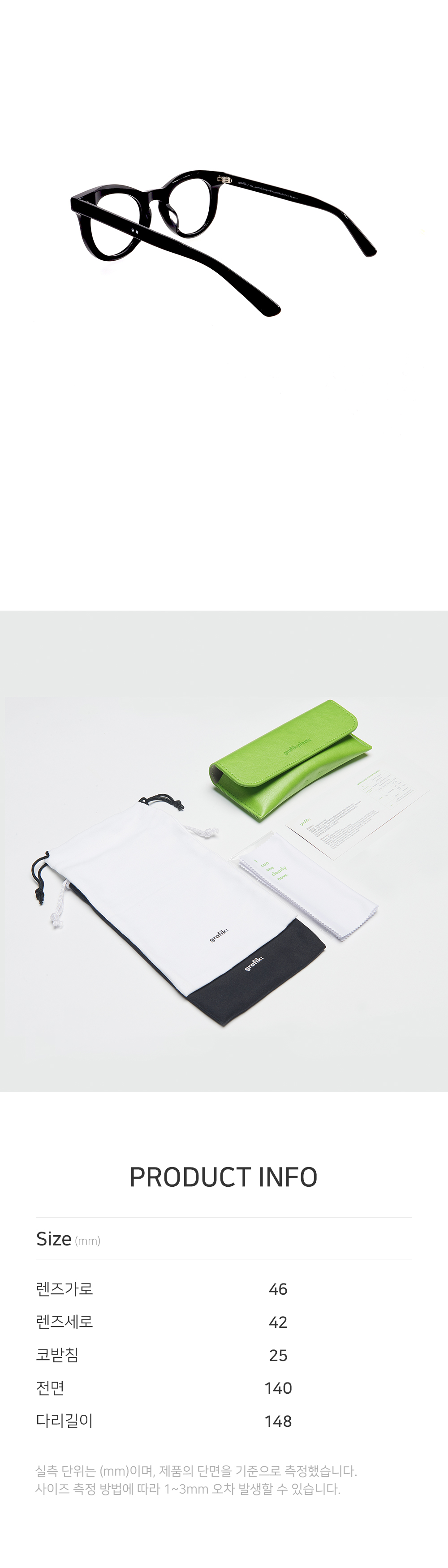 *안경테에 장착되어있는 렌즈는 프레임의 형태의 변형을 막기 위한 플라스틱 데모렌즈입니다.