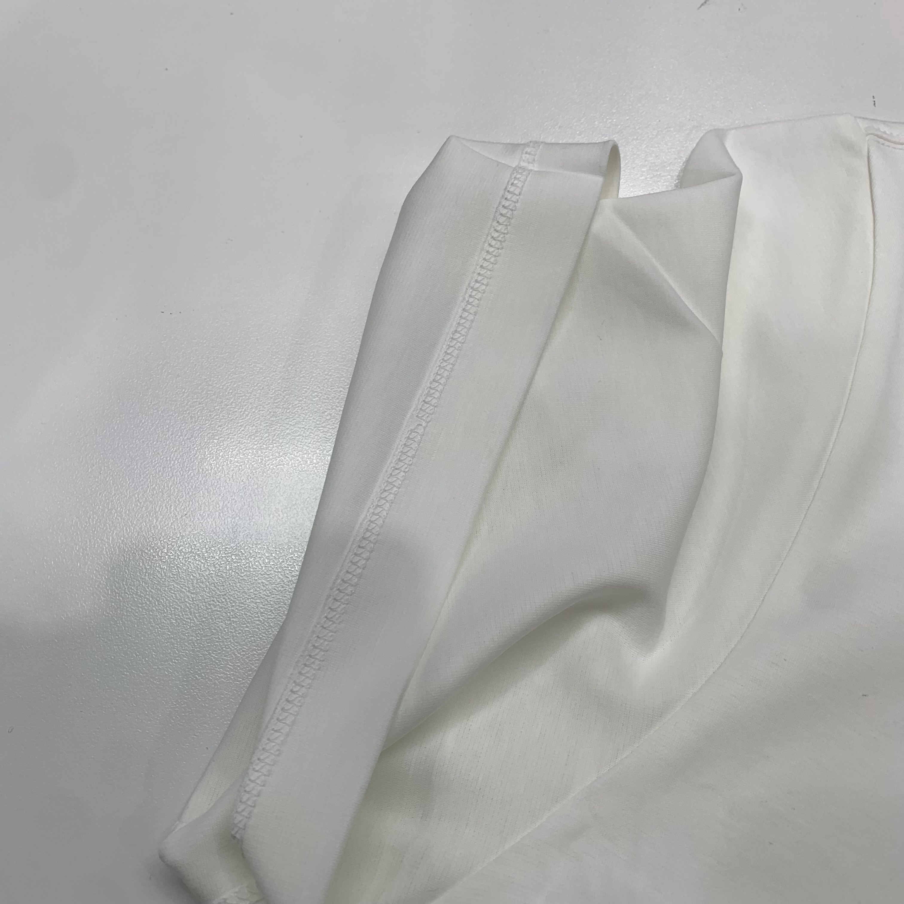 우영미 스웨잉 플라워 백 로고 티셔츠 화이트 - 24FW