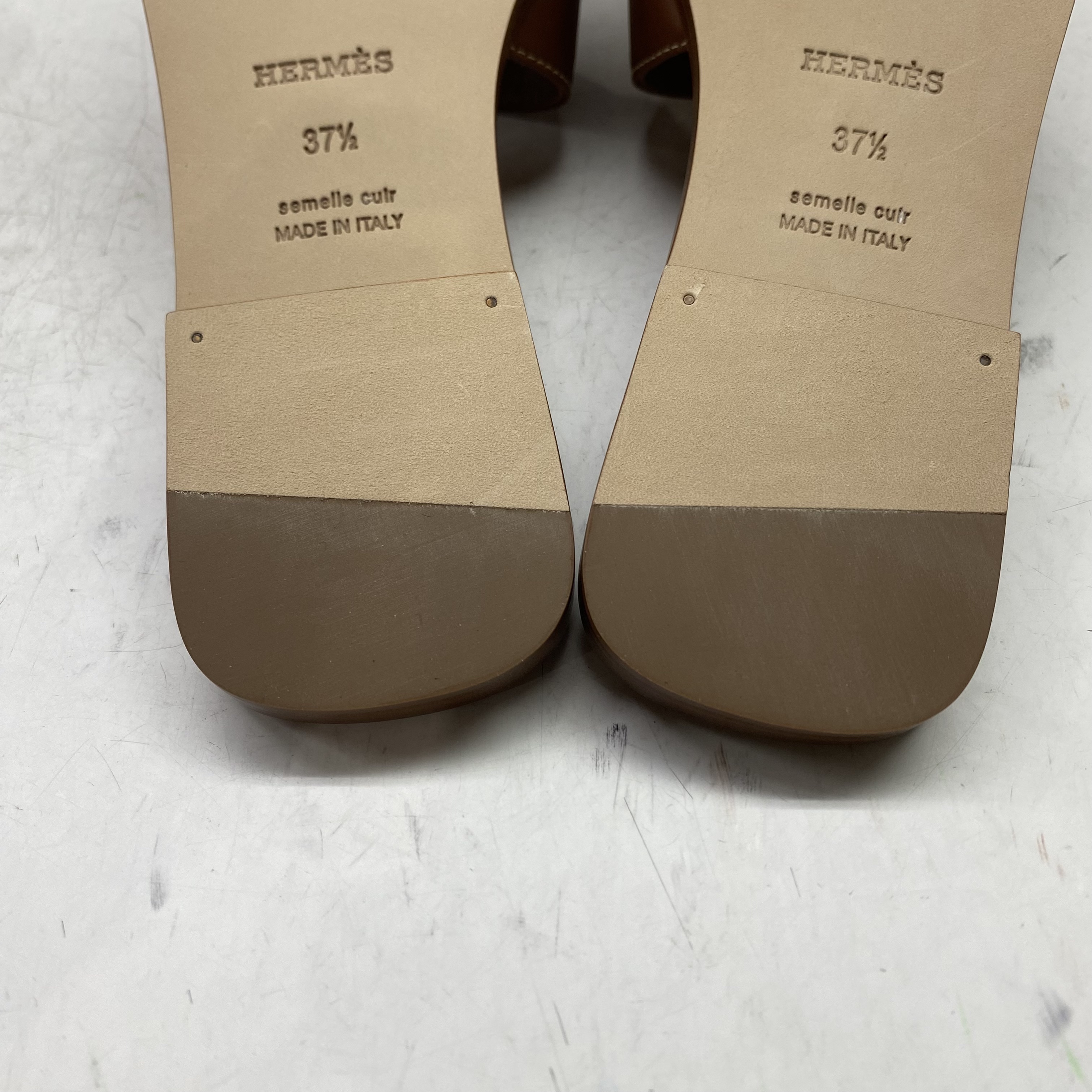 (W) Hermes Oran Sandal Calfskin & Gold Piqures Ecrues