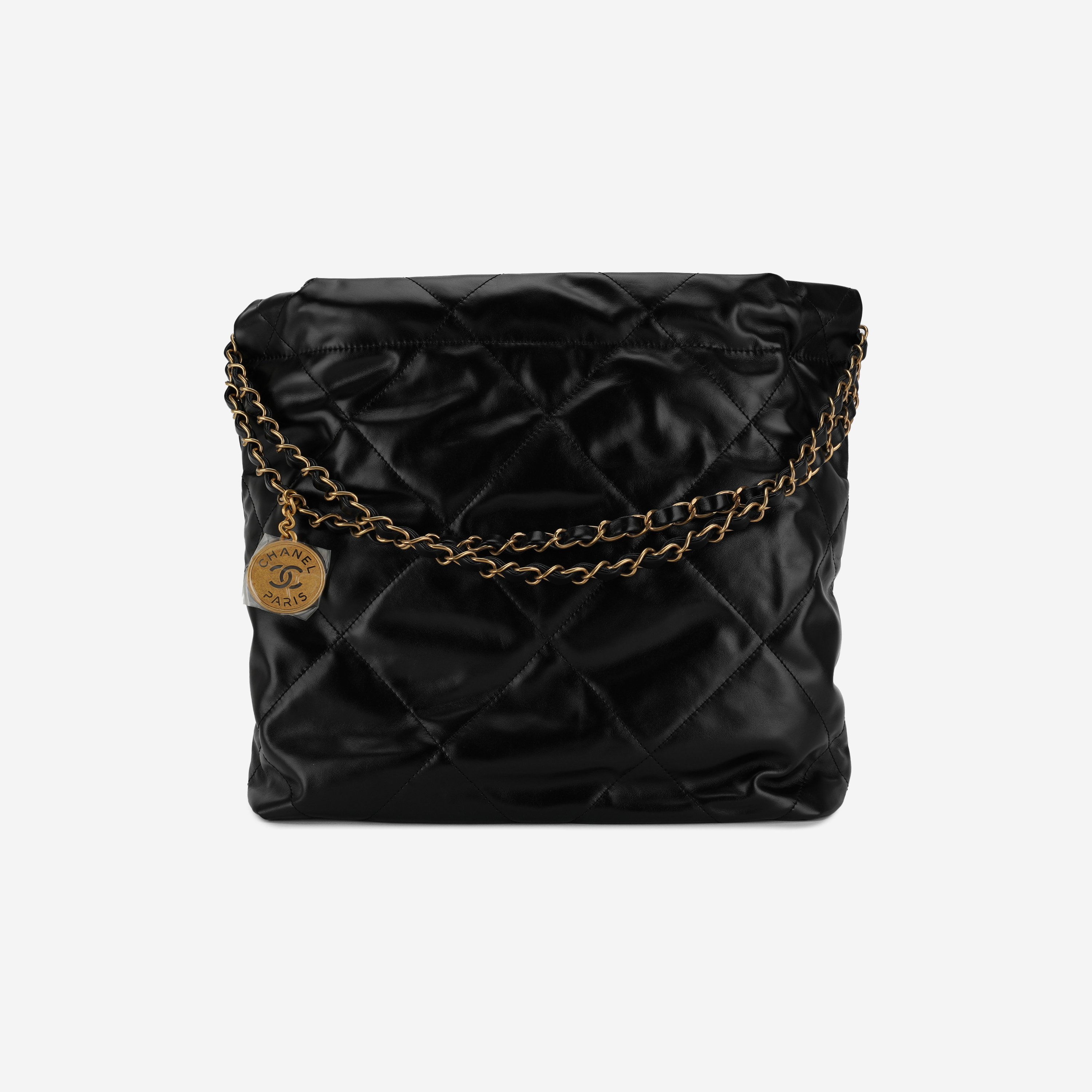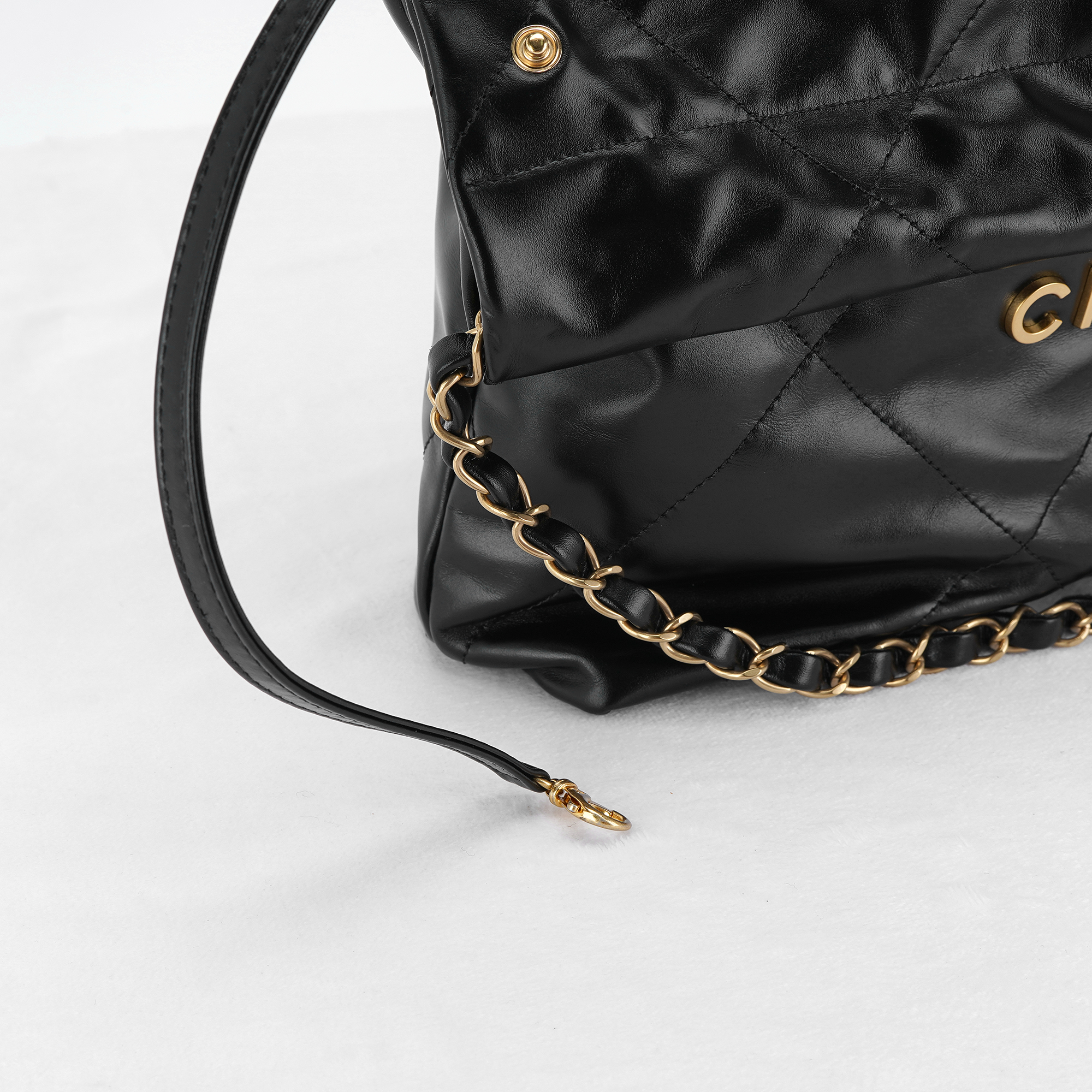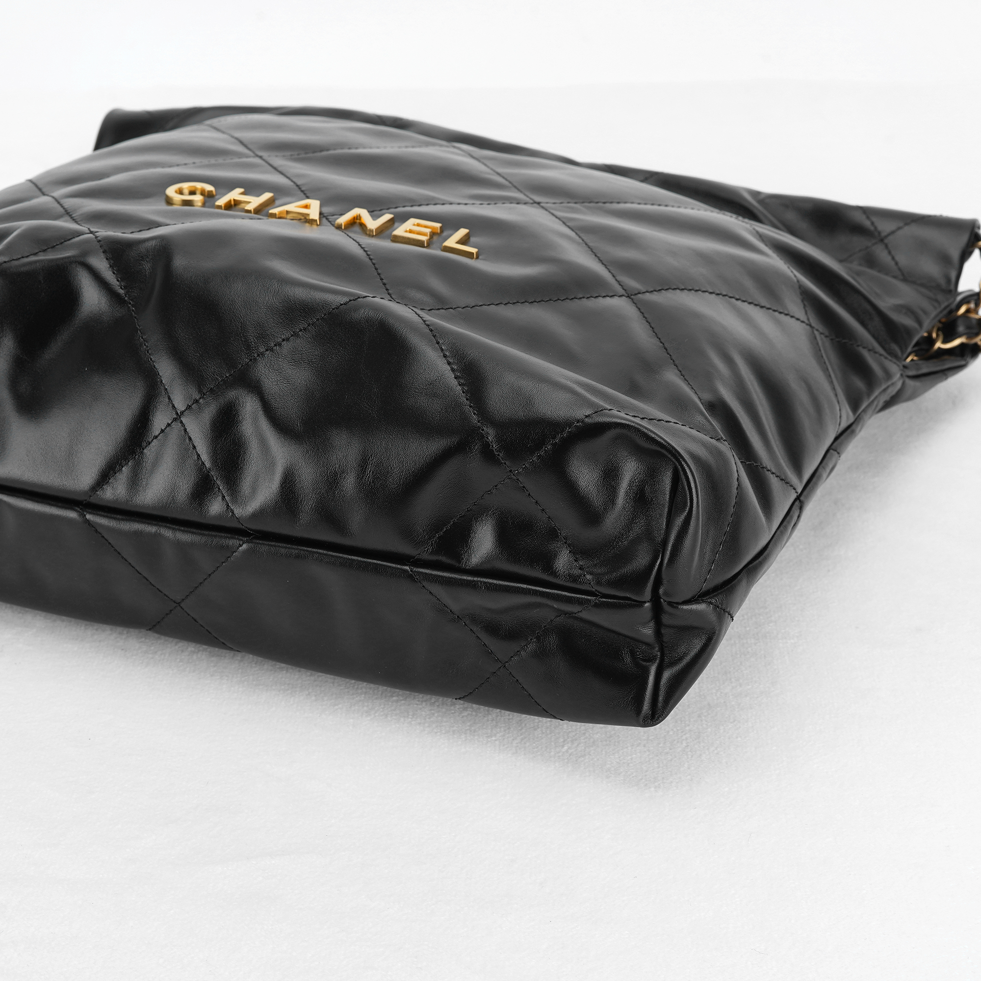 샤넬 22 스몰 핸드백 샤이니 카프스킨 & 골드 메탈 블랙