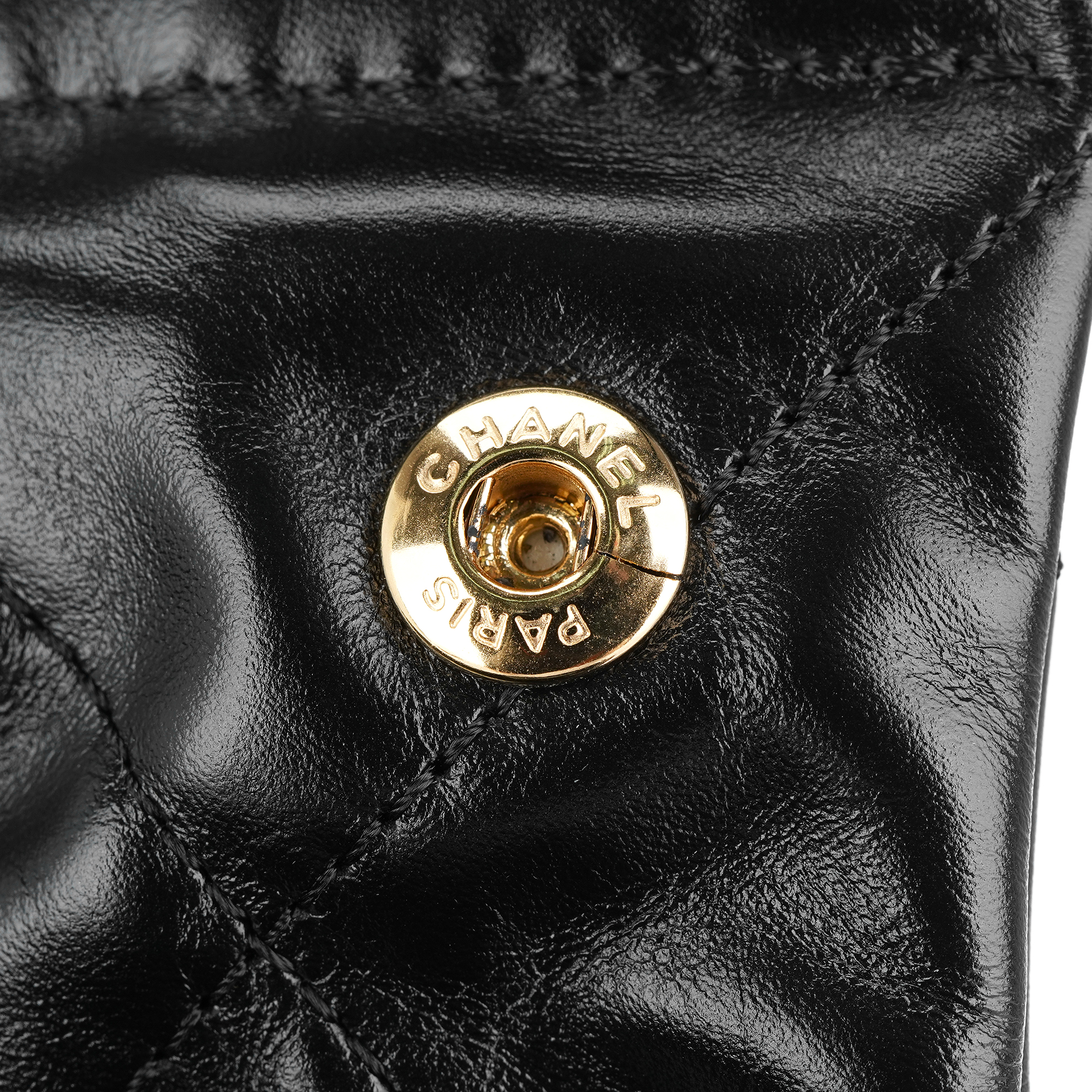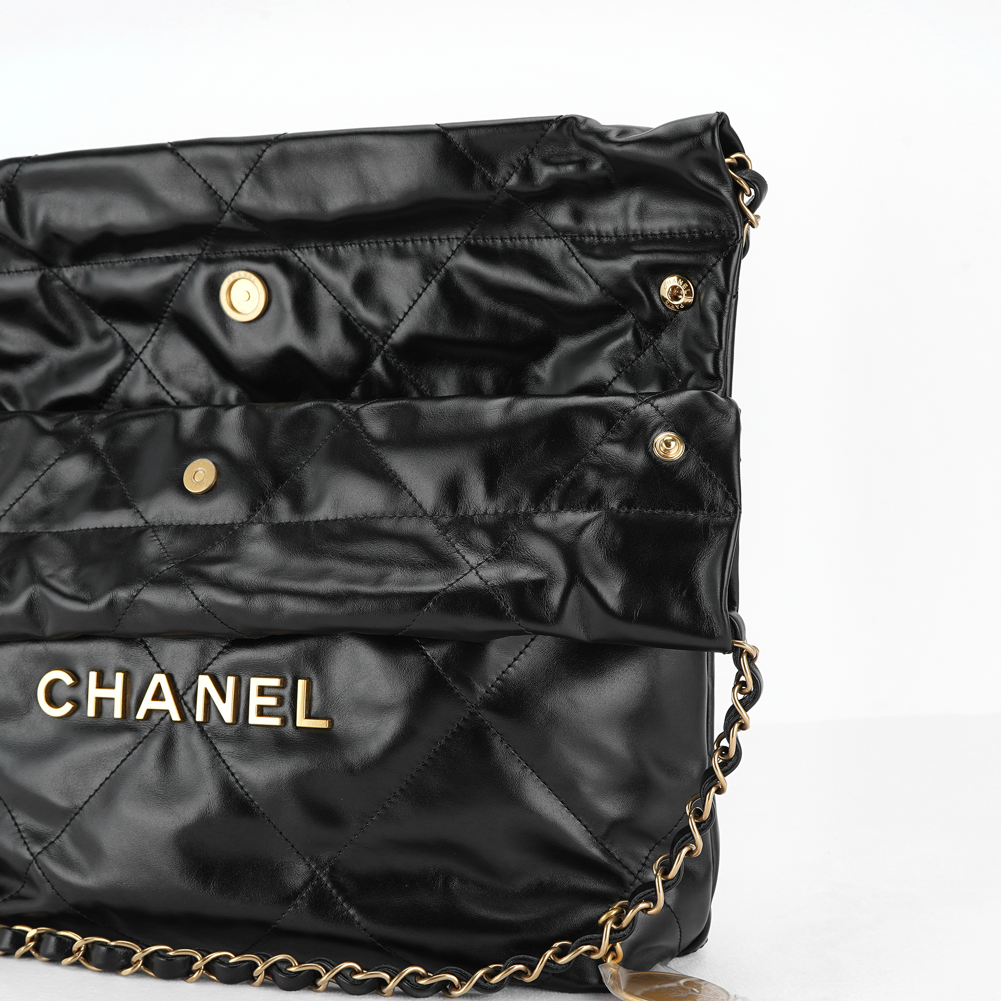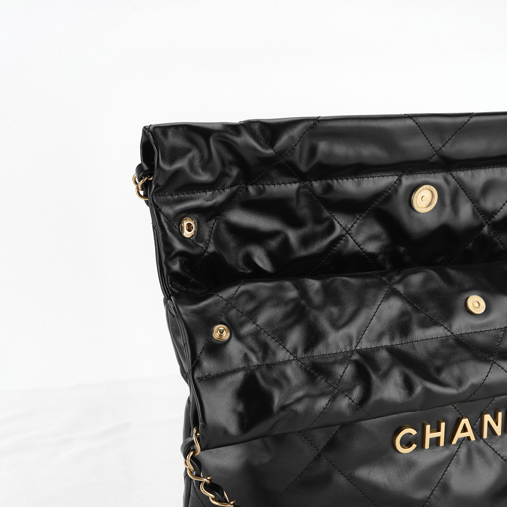 샤넬 22 스몰 핸드백 샤이니 카프스킨 & 골드 메탈 블랙
