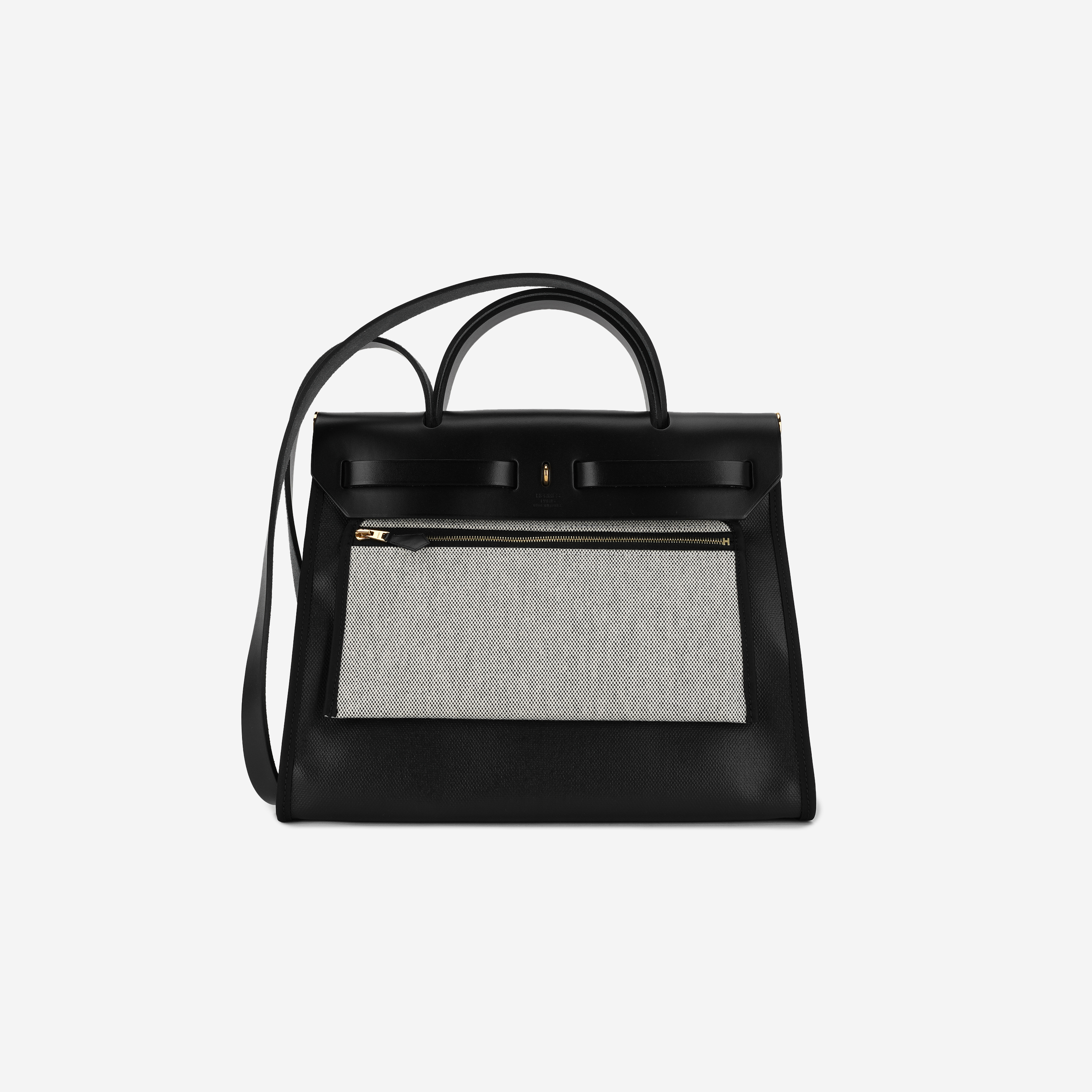 Hermes Herbag Zip 31 Bag Sellier H Berlin Canvas Hunter Cowhide & Gold Noir Ecru