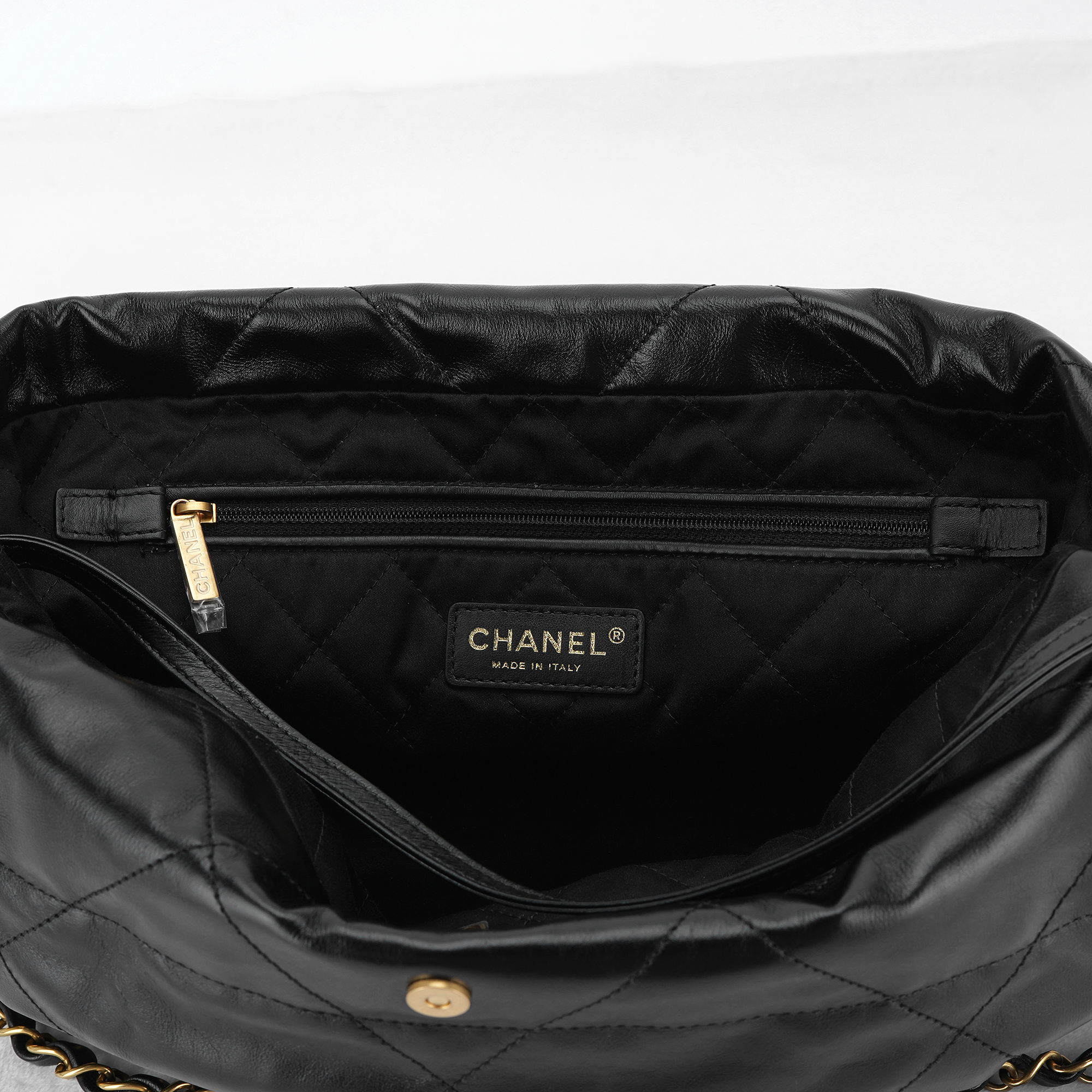 Chanel 22 Small Handbag Shiny Calfskin & Gold Black