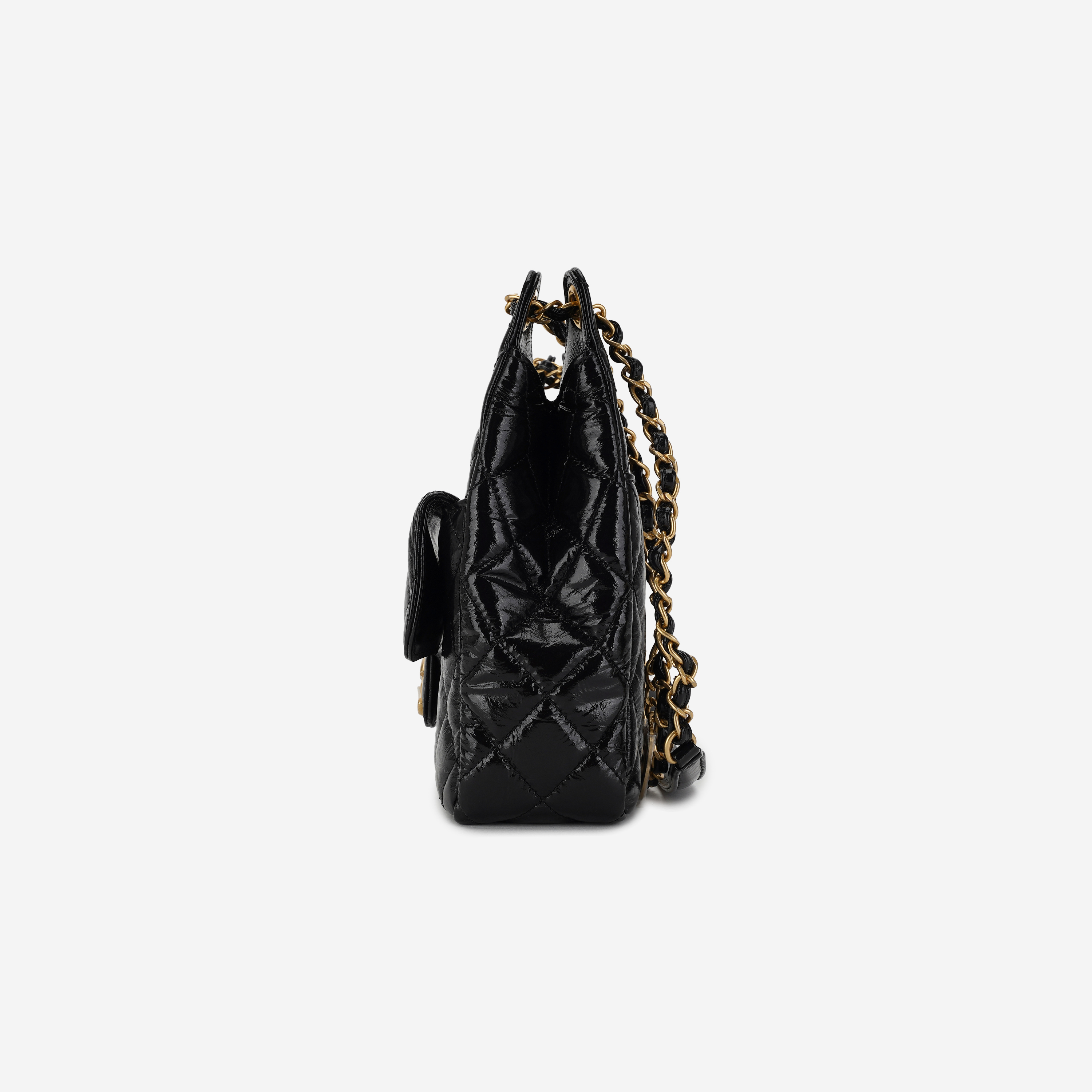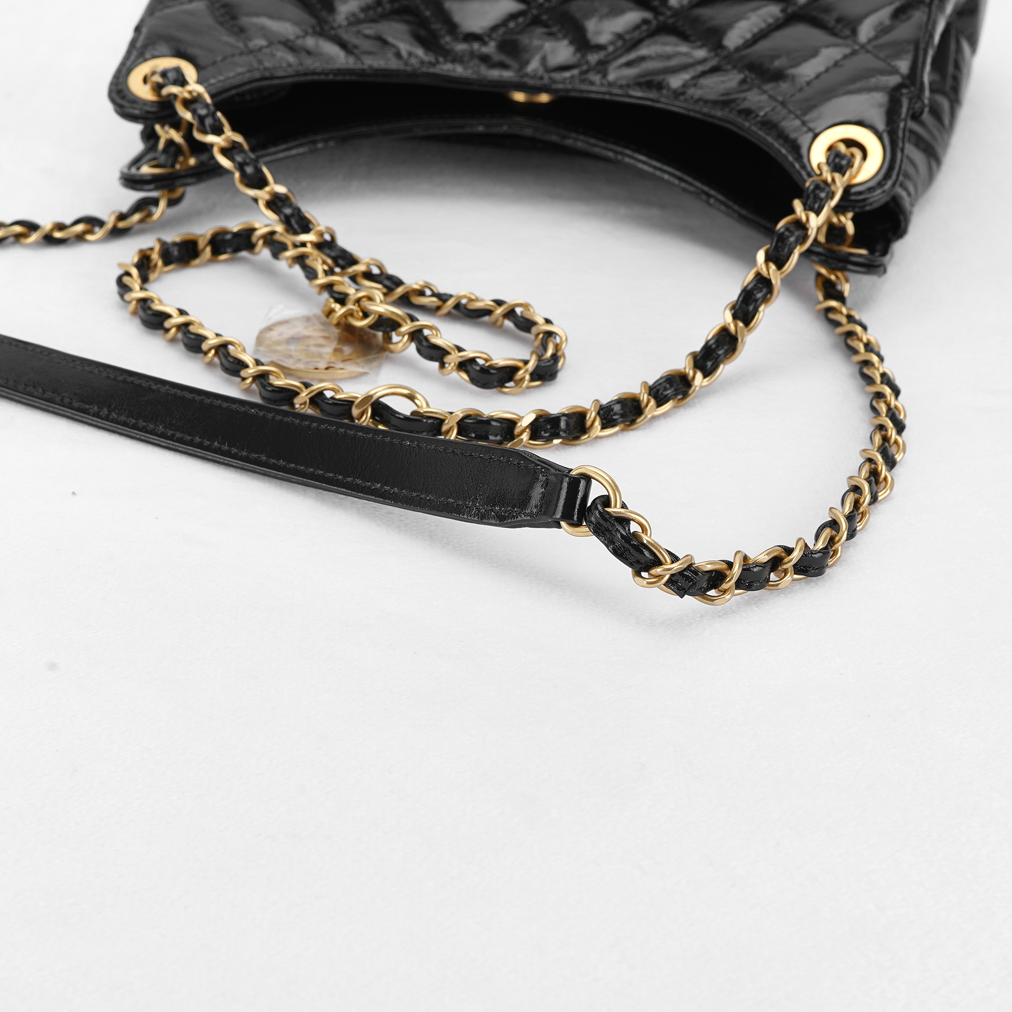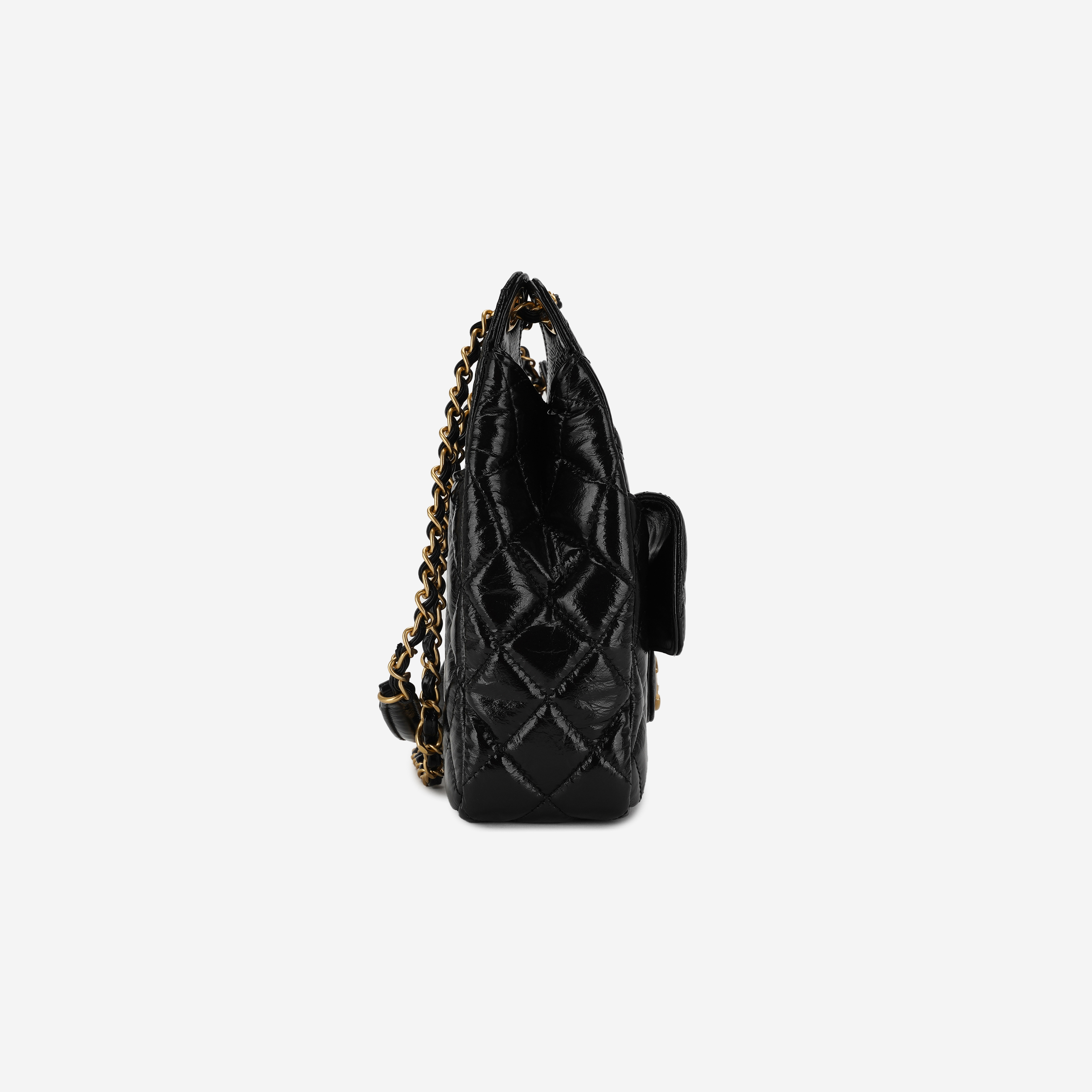 샤넬 호보 핸드백 샤이니 크럼플드 카프스킨 & 골드 메탈 블랙