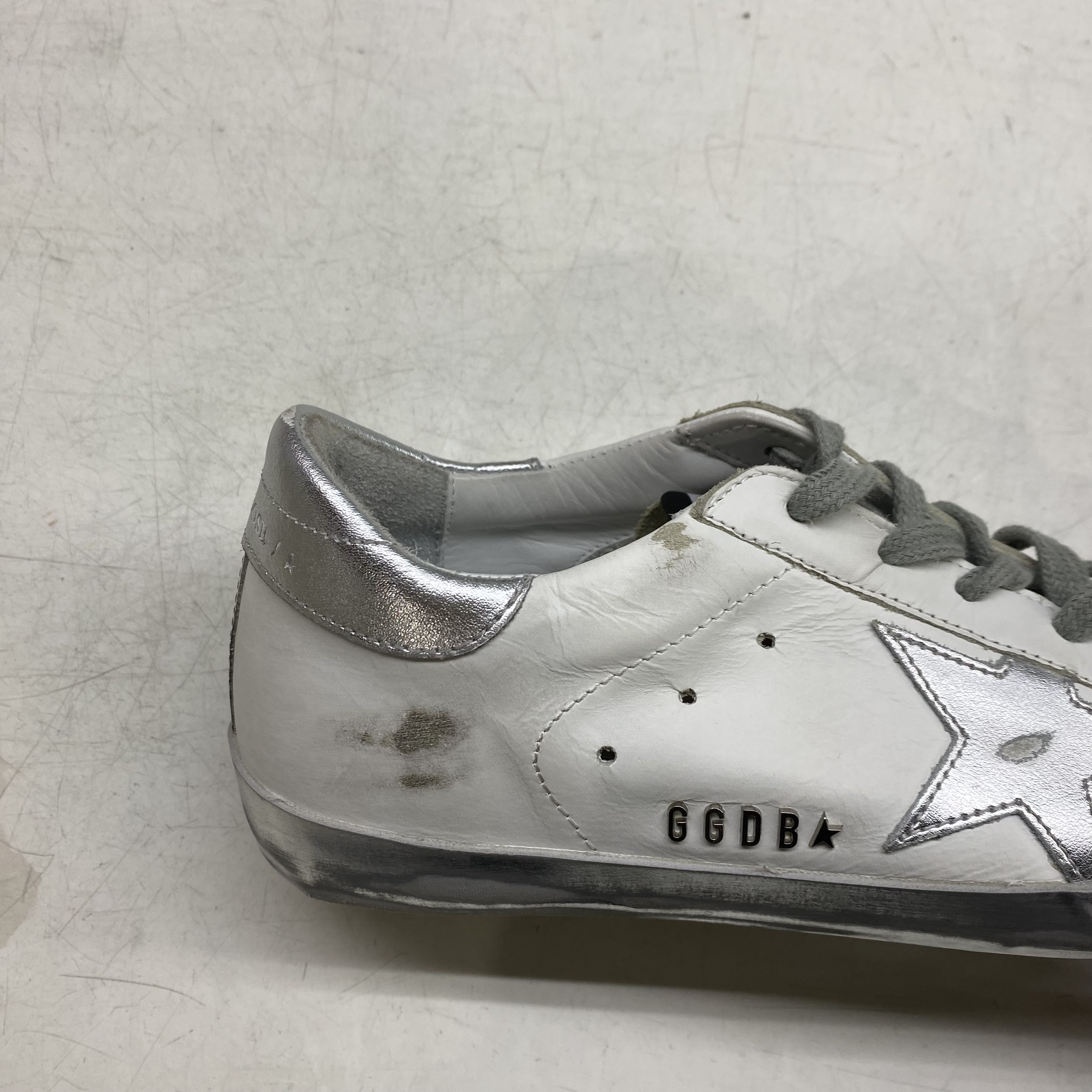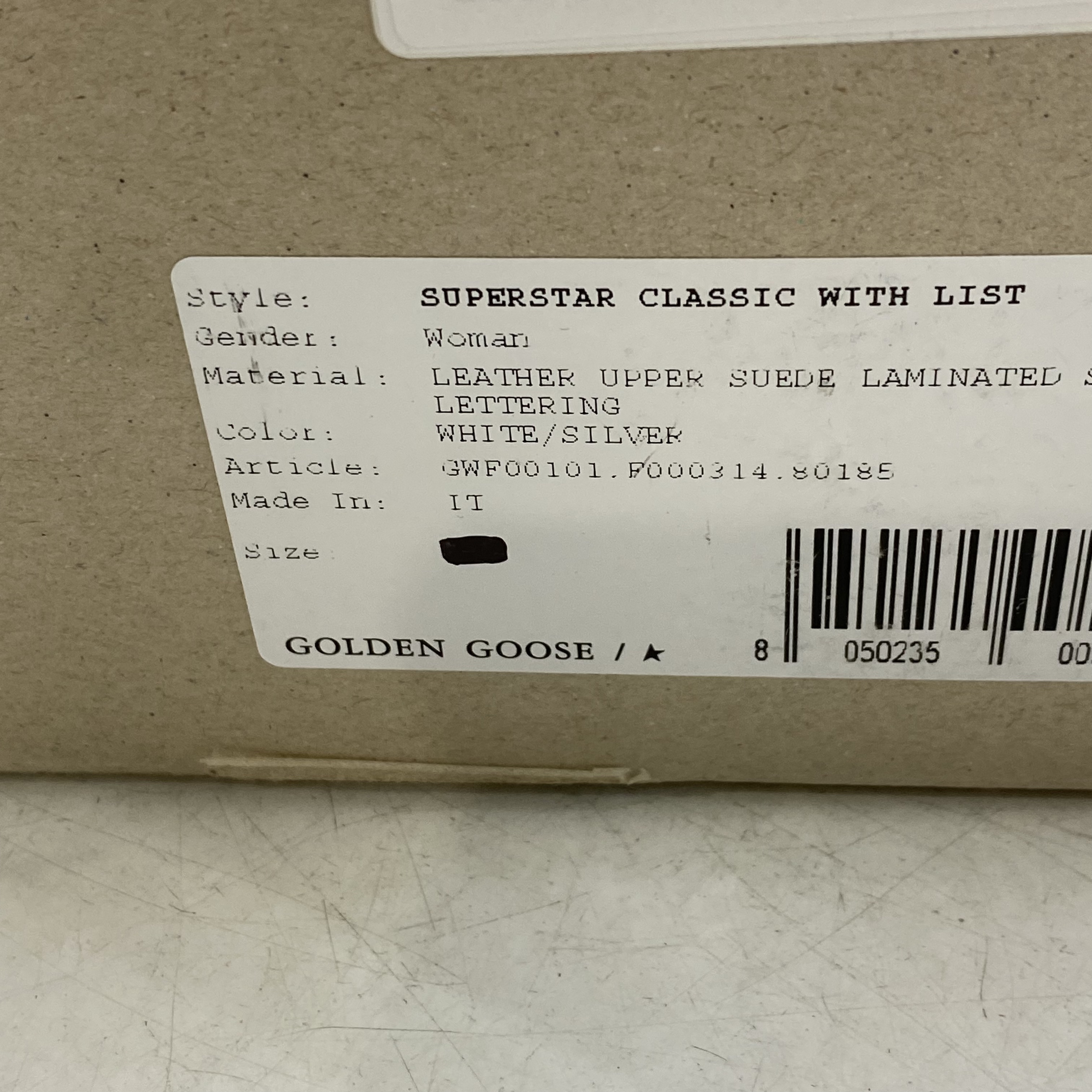 (W) Golden Goose Superstar White Silver Heel Tab Sneakers