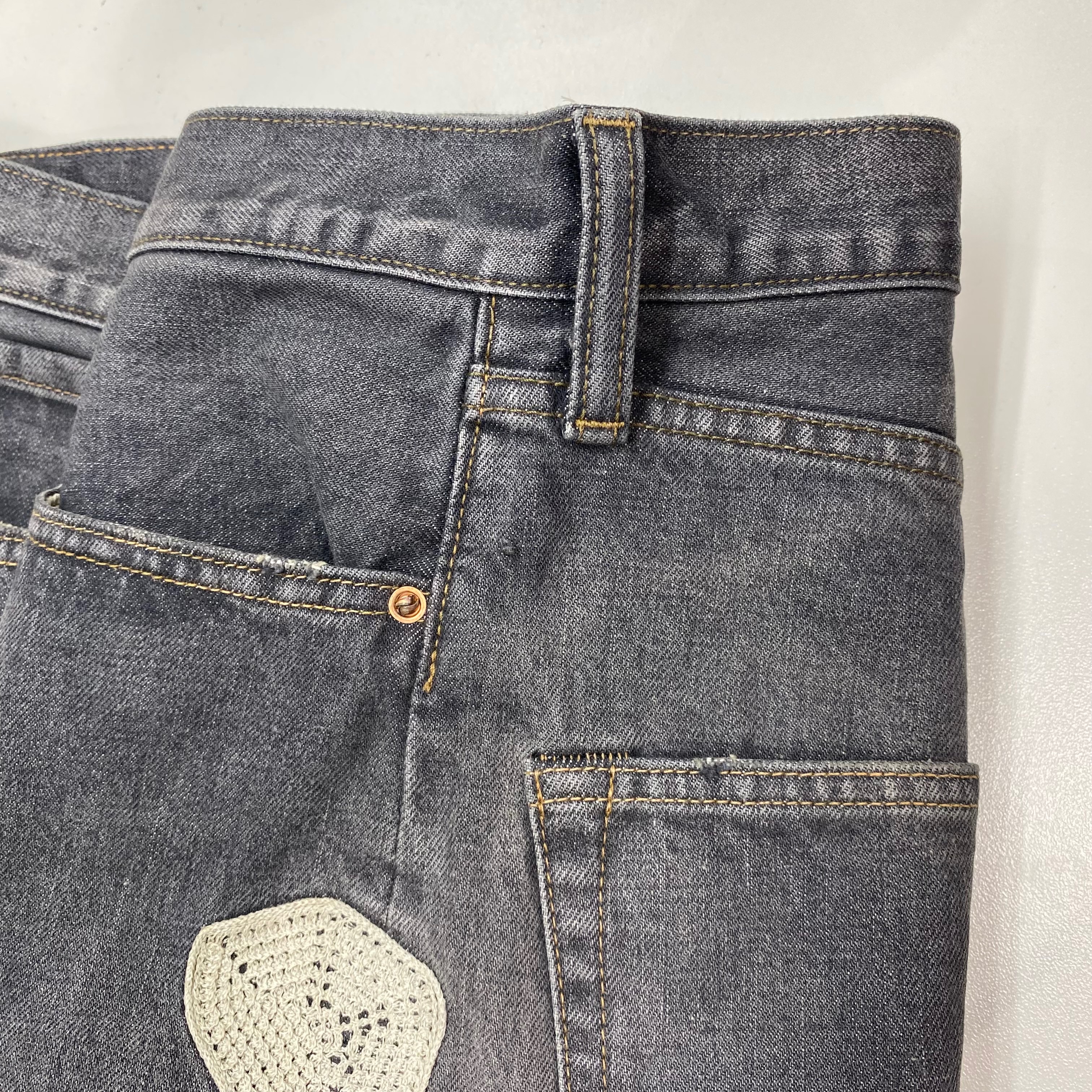 캐피탈 14온즈 데님 5P 본 자수 숏 팬츠 블랙
