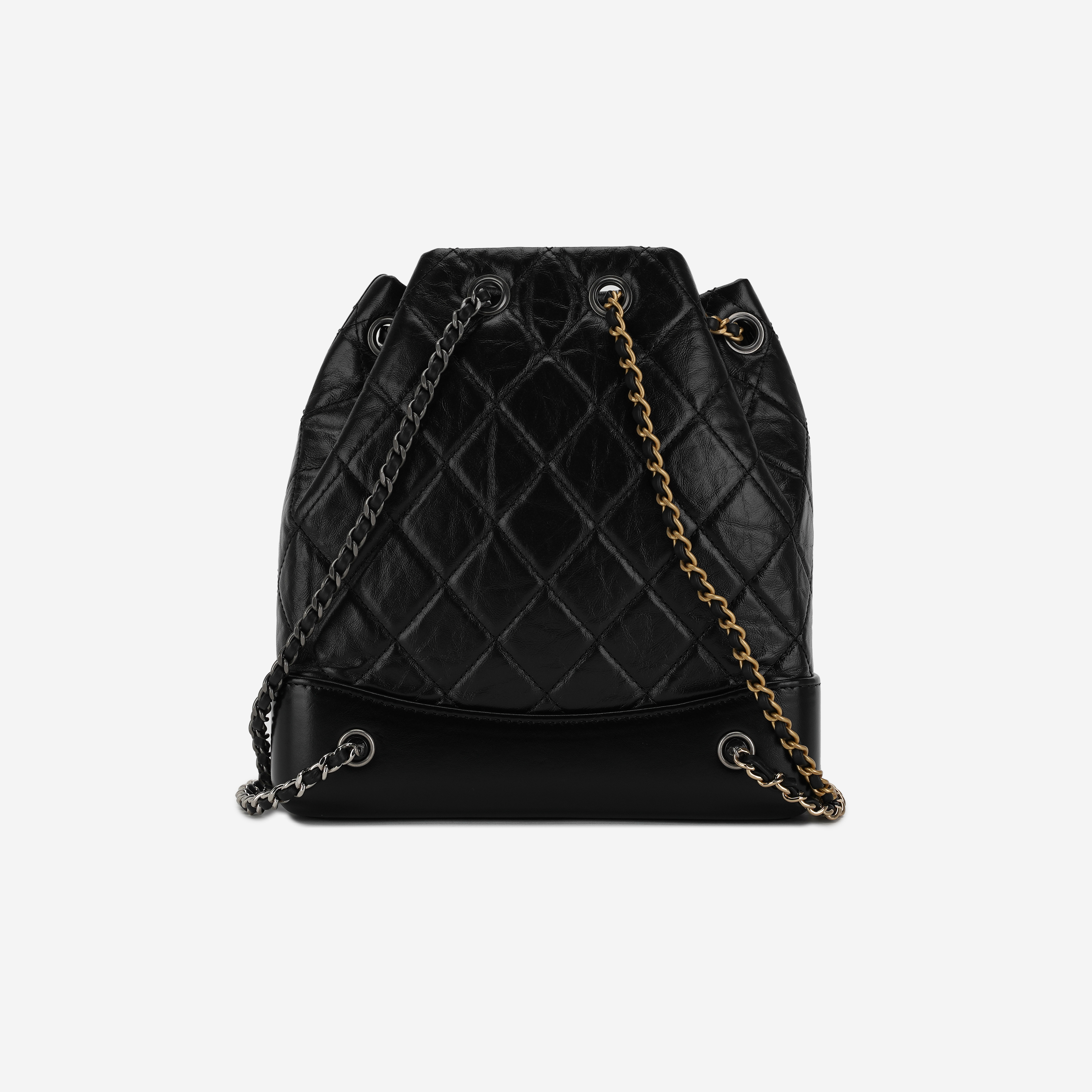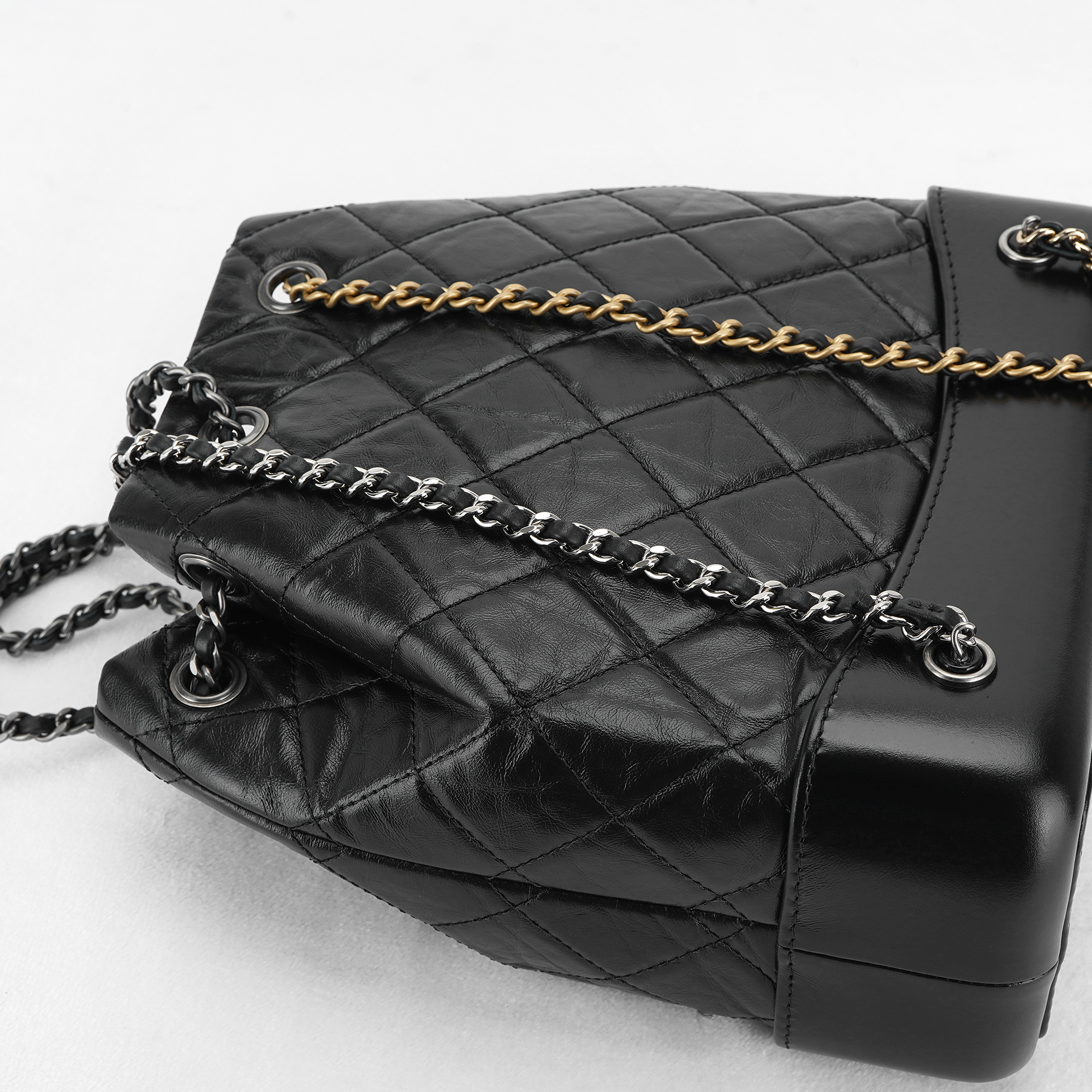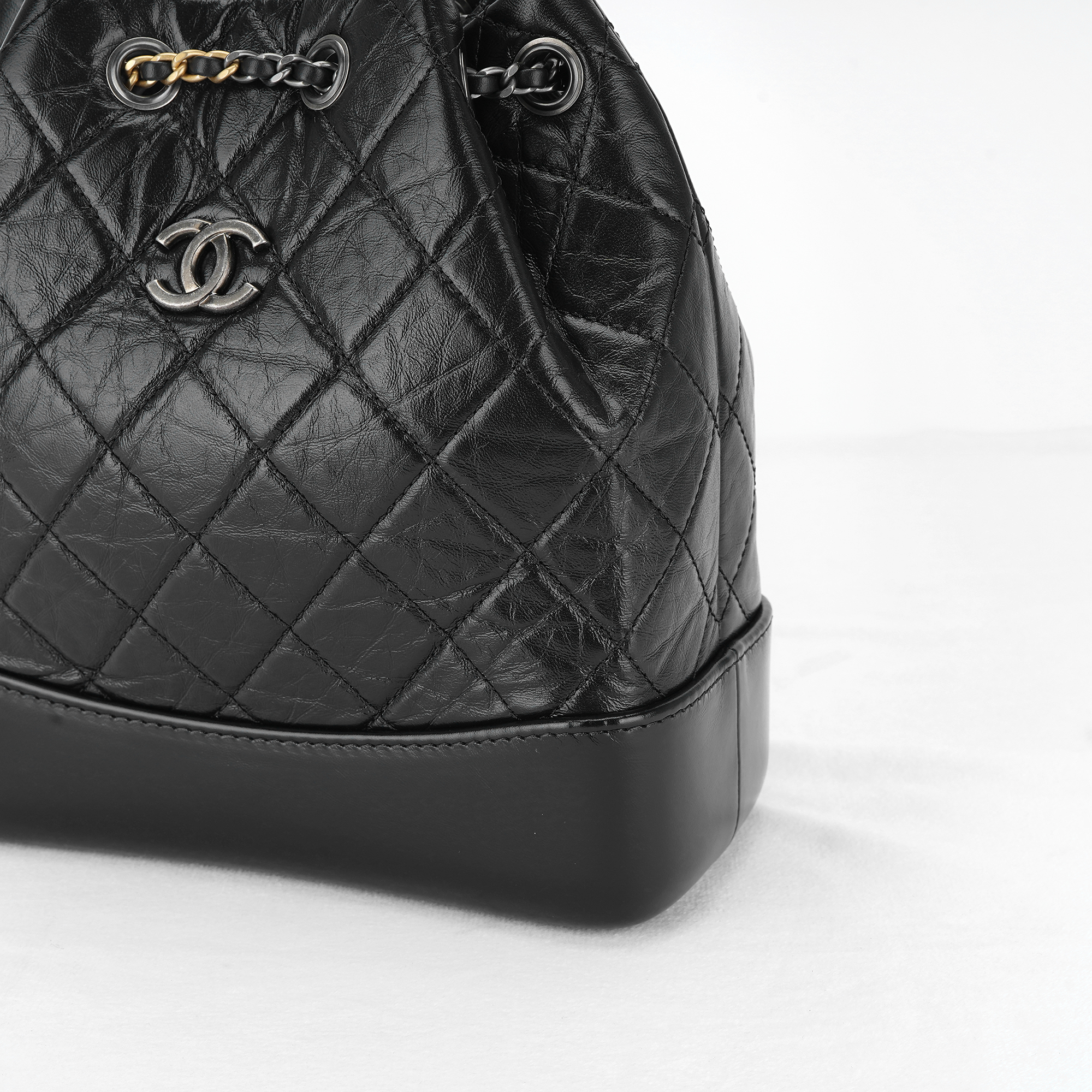 Chanel Small Gabrielle Backpack Aged Calfskin & Gold Silver Black