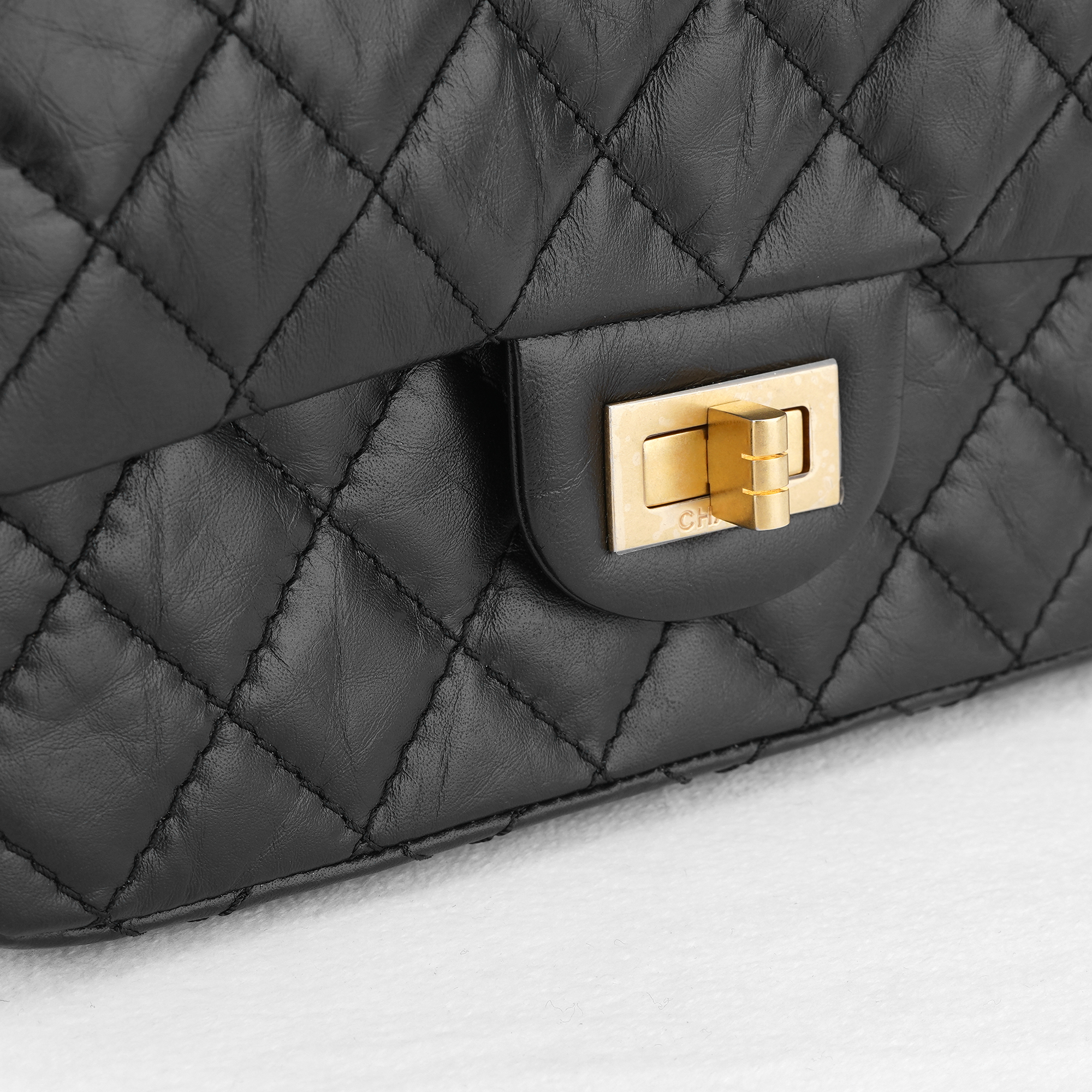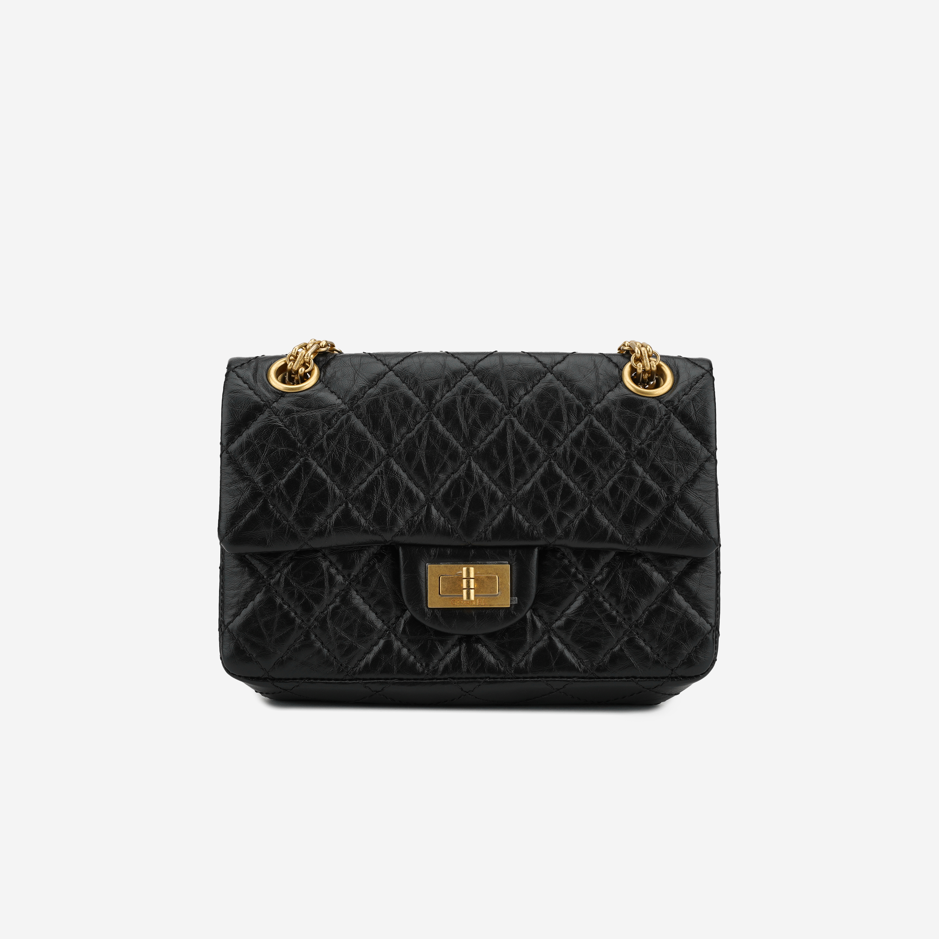 Chanel Mini 2.55 Handbag Aged Calfskin & Gold Black