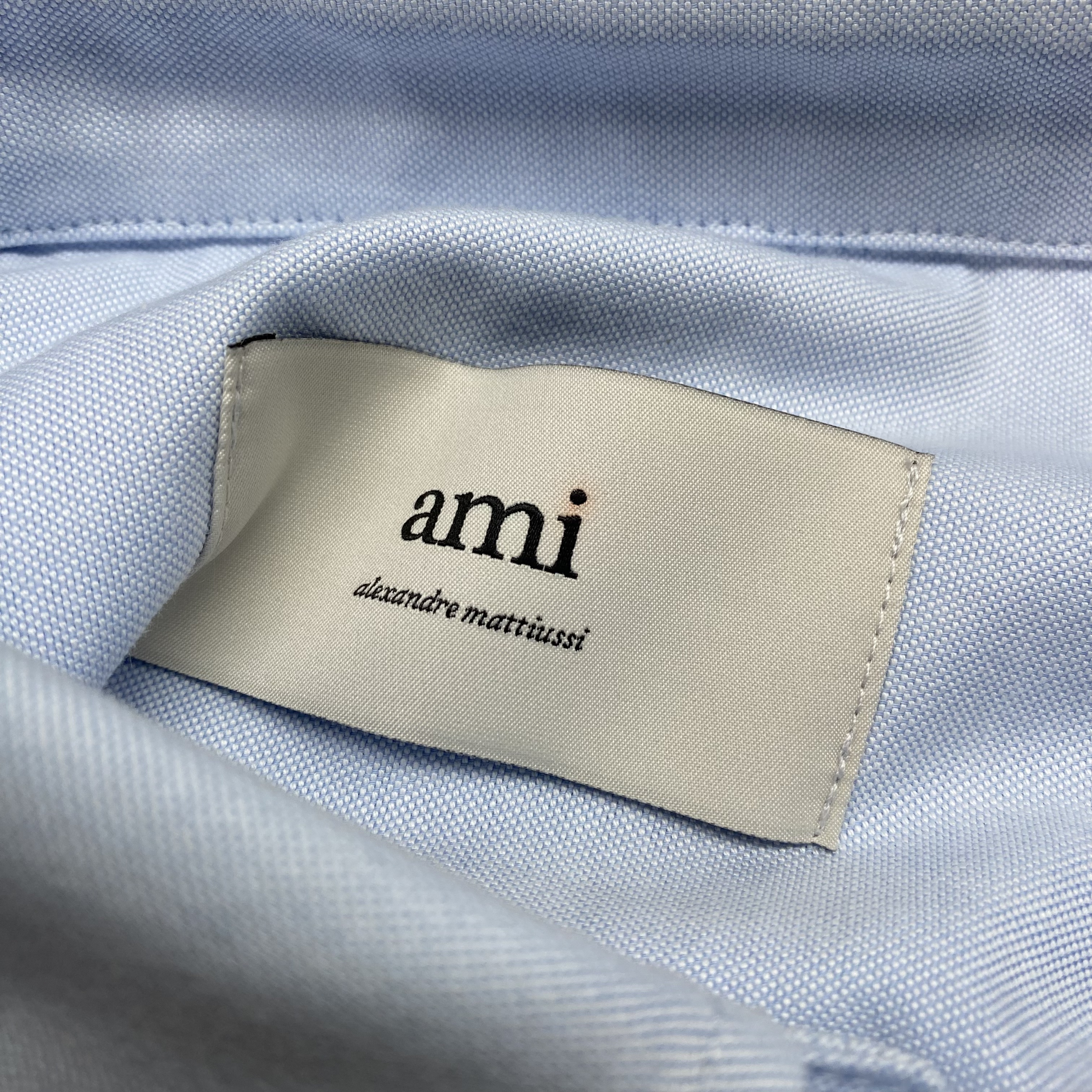 아미 스몰 하트 로고 코튼 옥스포드 버튼 다운 셔츠 스카이 블루