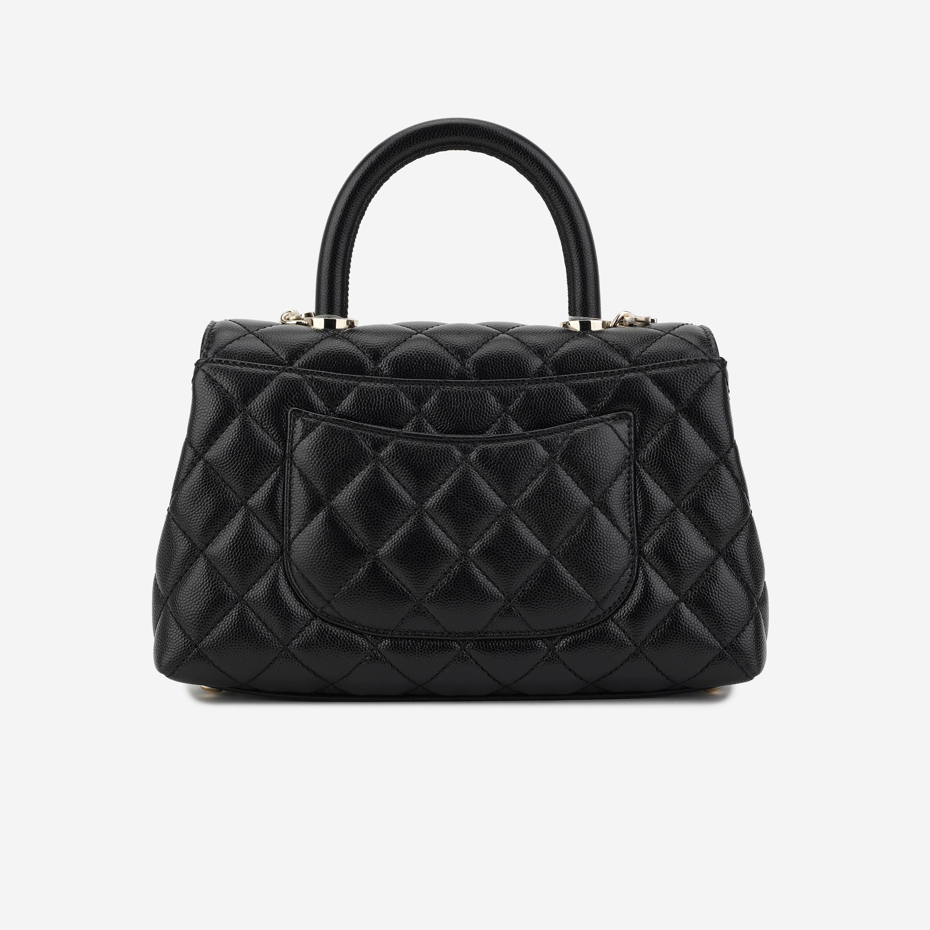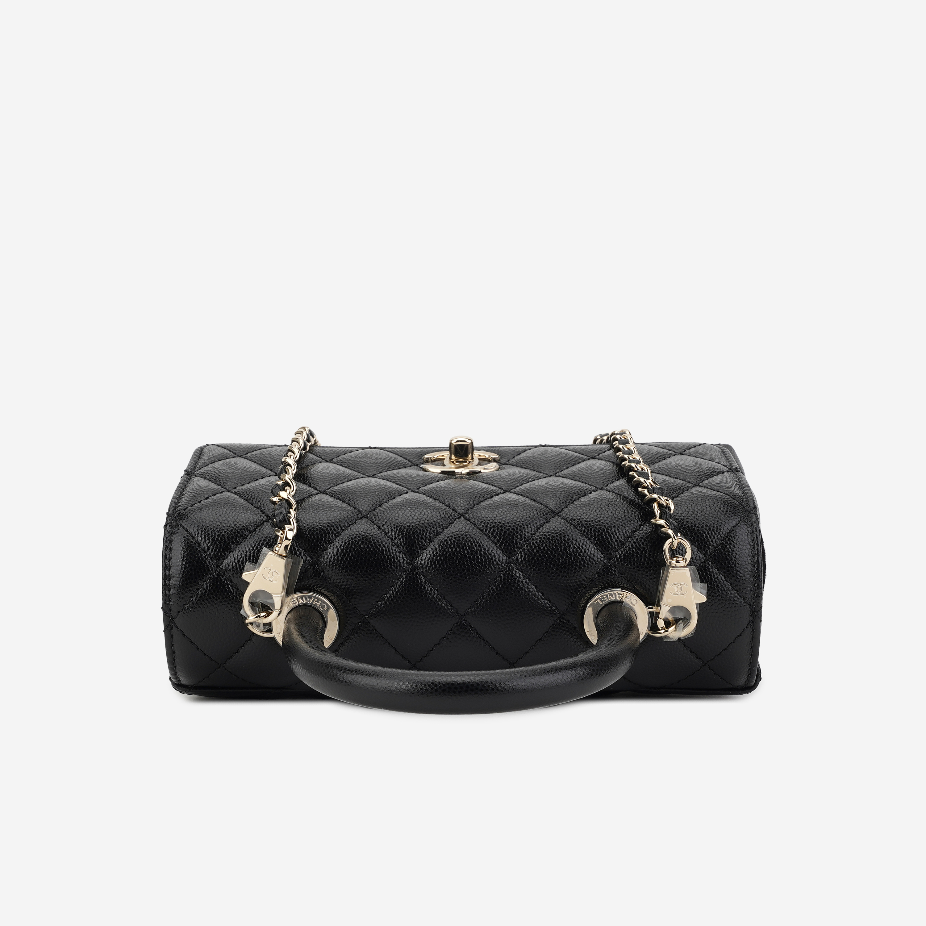 샤넬 핸들 장식의 스몰 플랩백 그레인드 카프스킨 & 골드 메탈 블랙