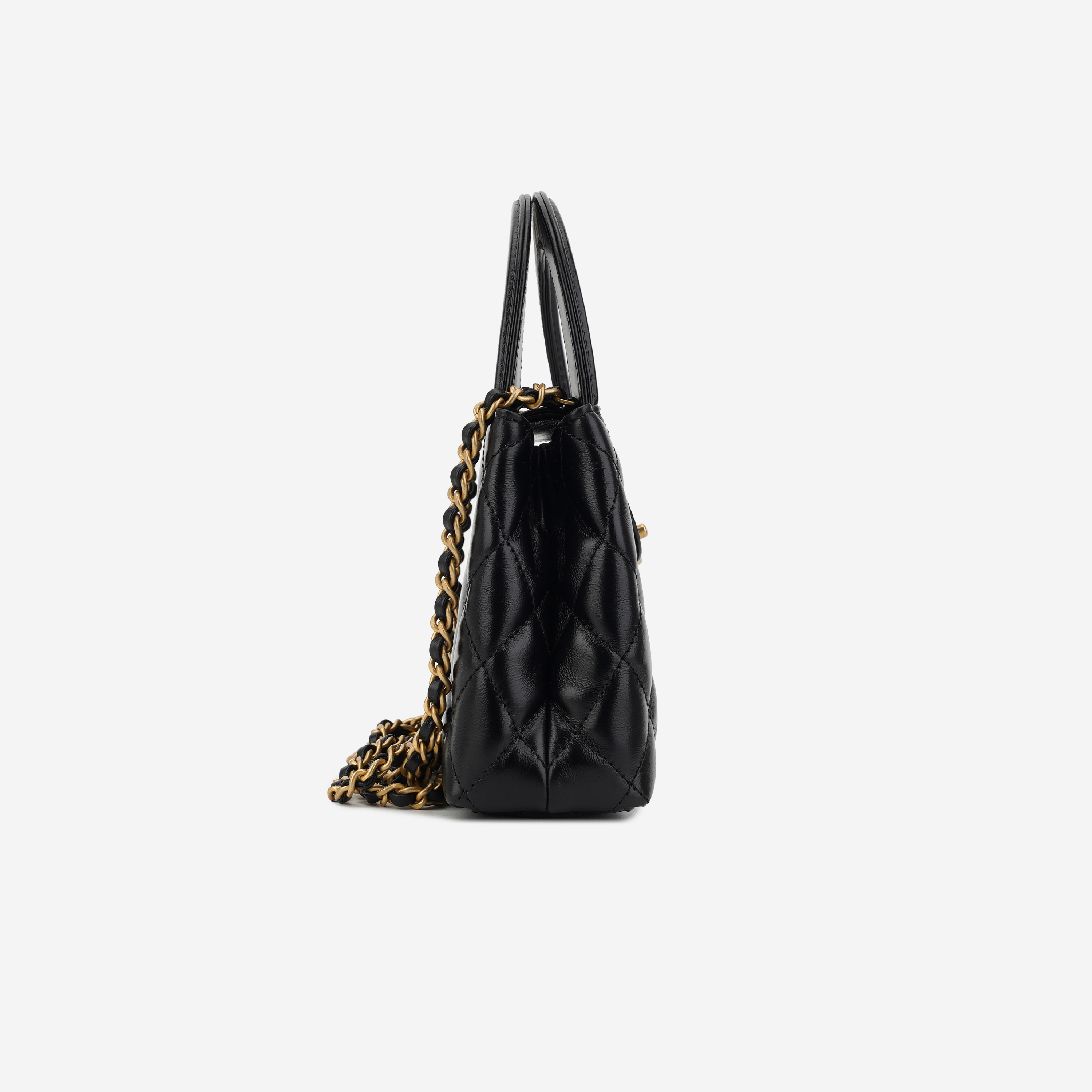 샤넬 미니 쇼핑백 샤이니 빈티지 카프스킨 & 골드 메탈 블랙