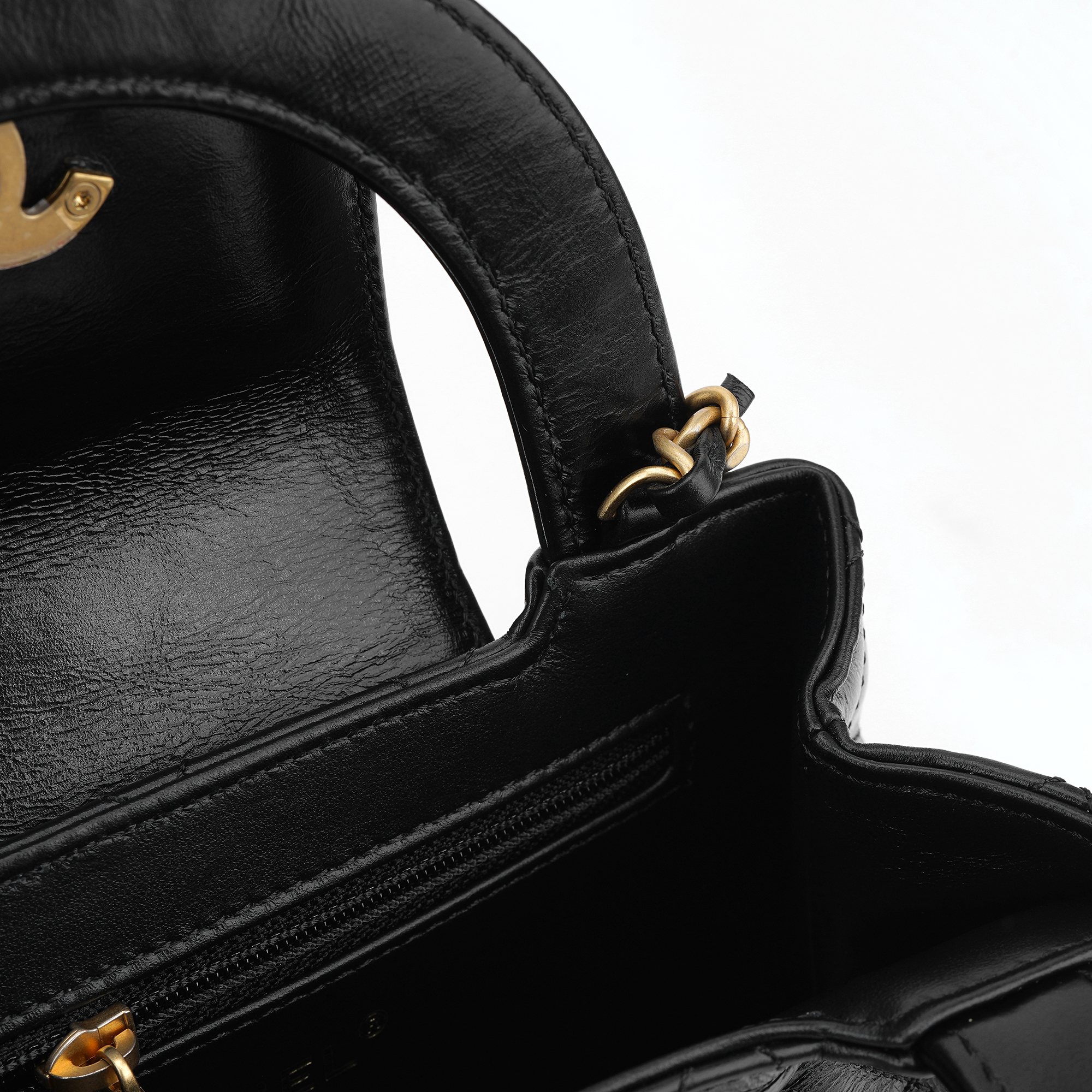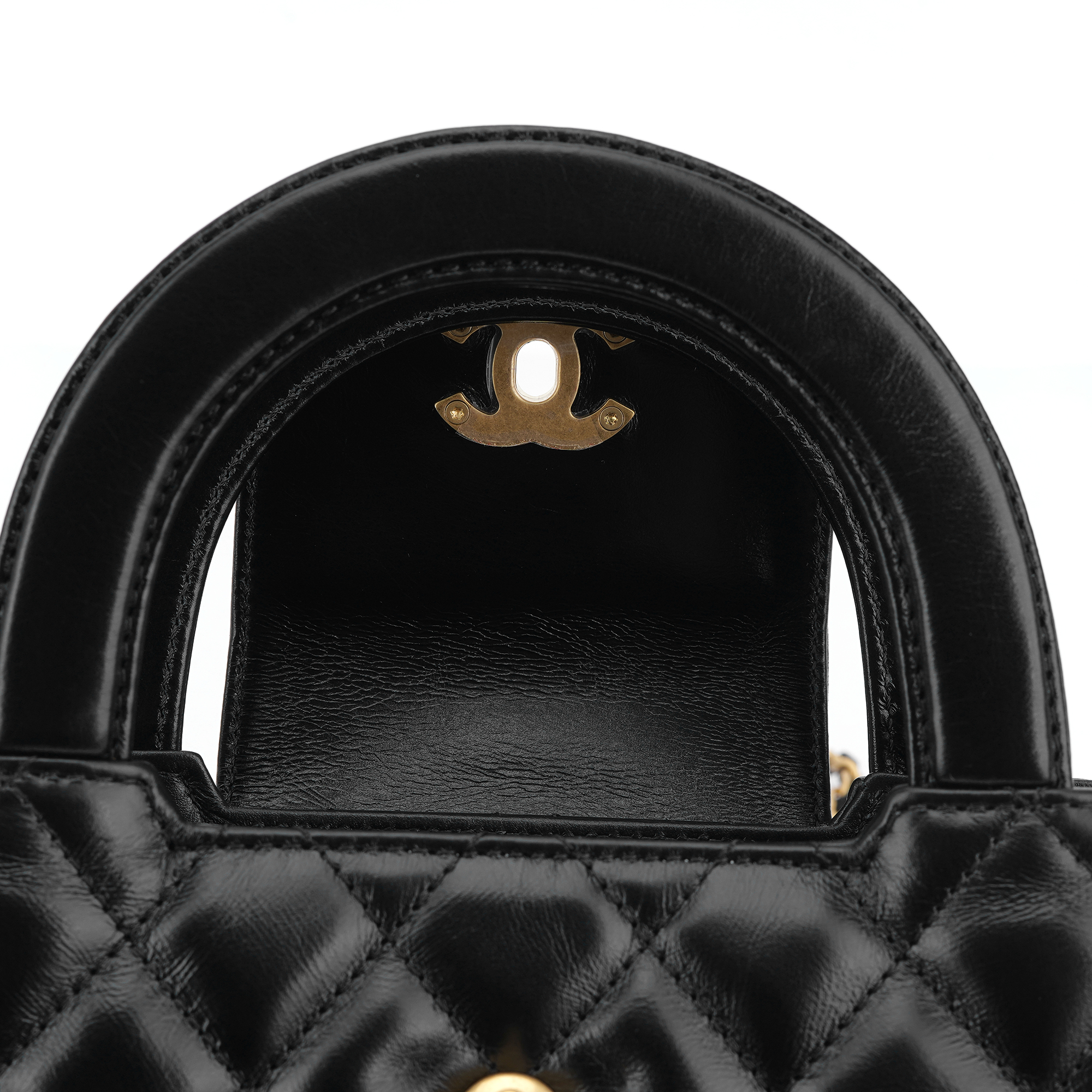 Chanel Mini Shopping Bag Shiny Aged Calfskin & Gold Black