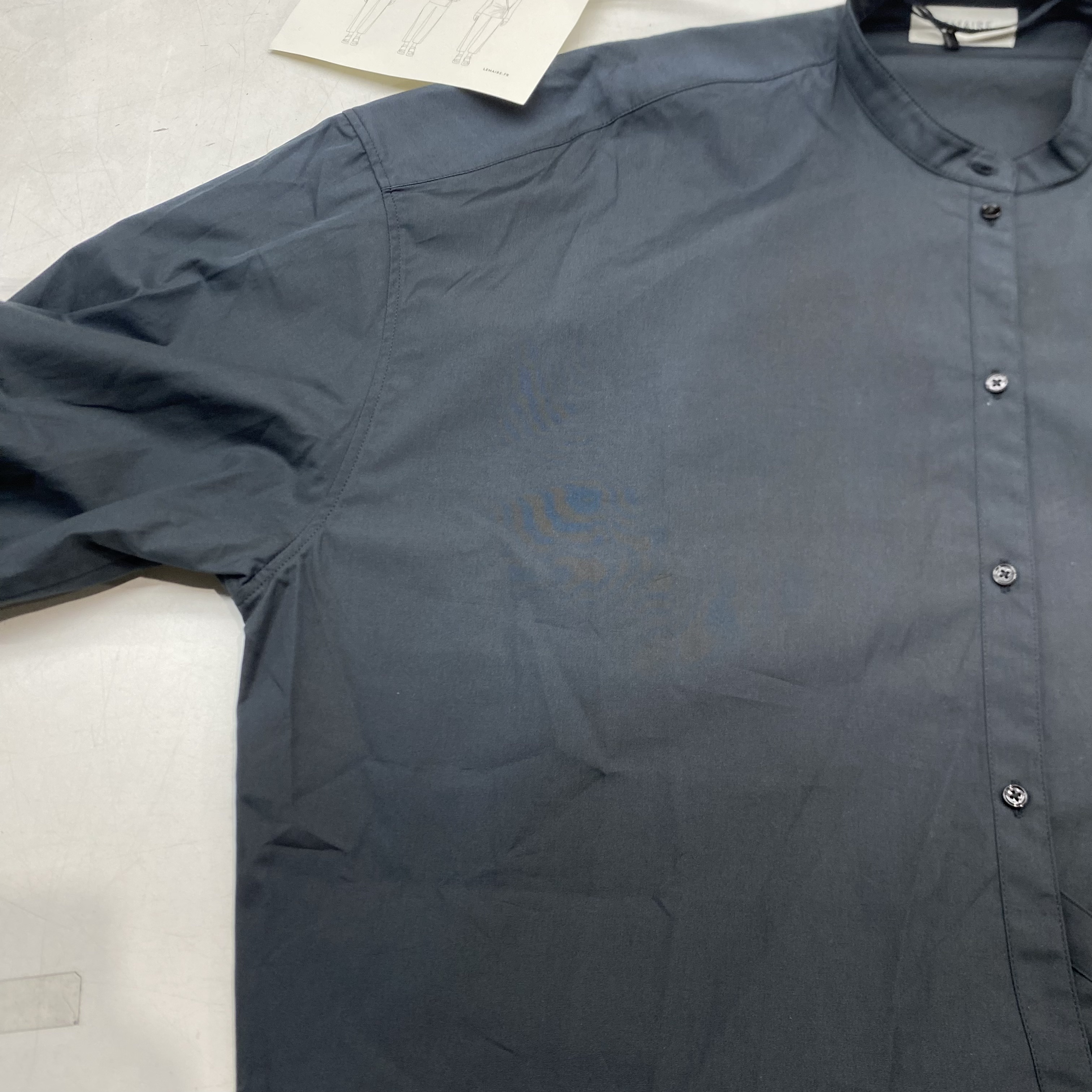 (W) Lemaire Officer Collar Twisted Shirt Cotton Poplin Squid Ink