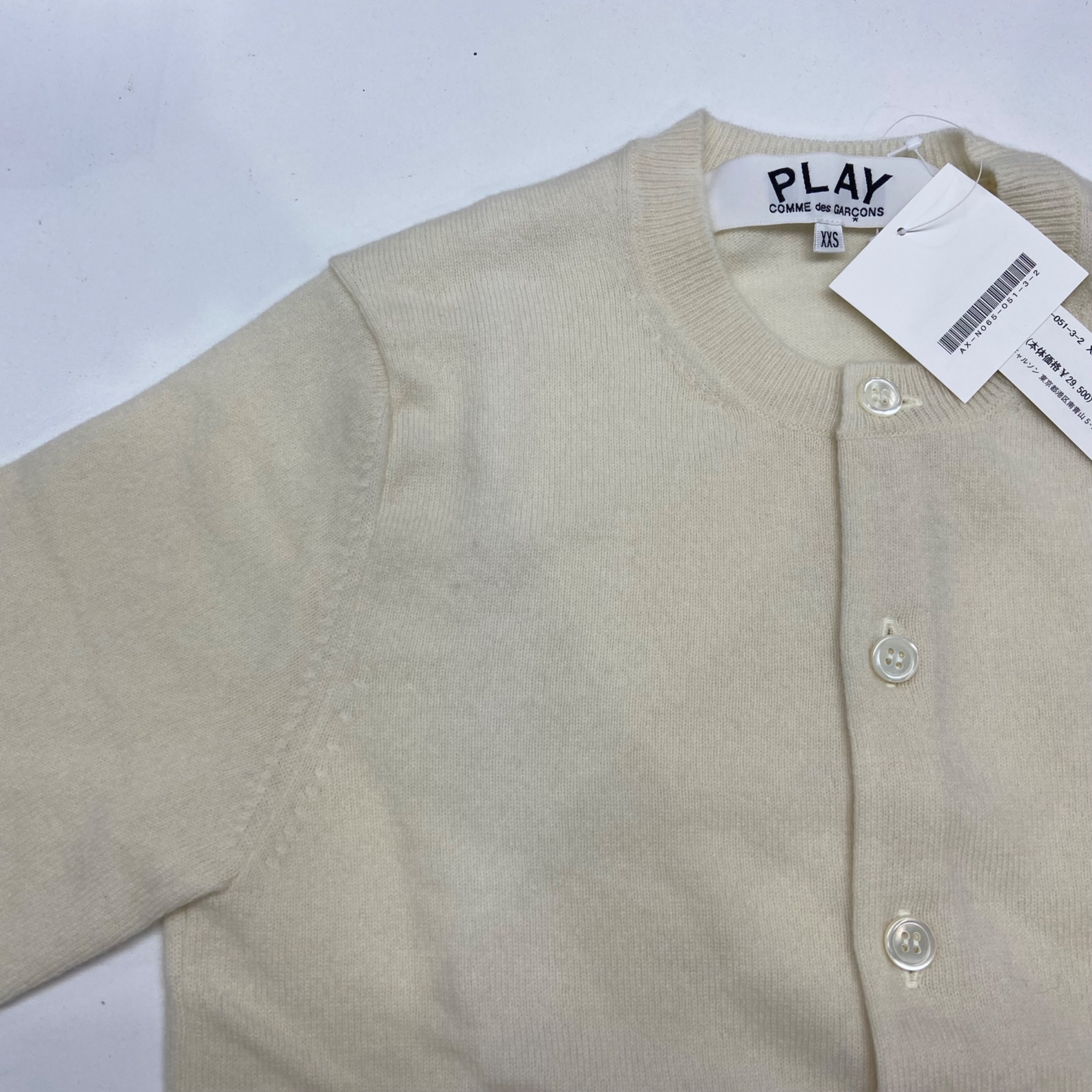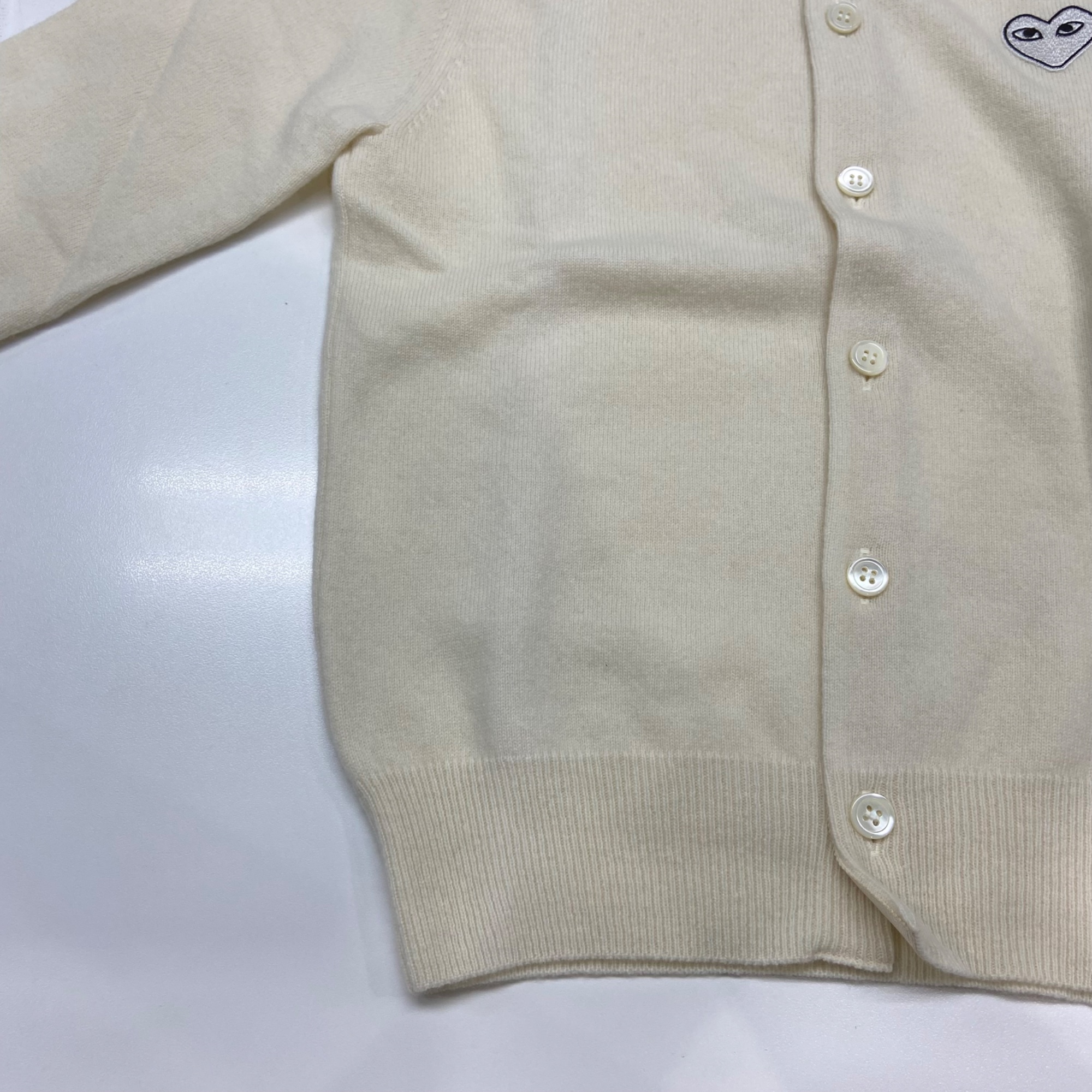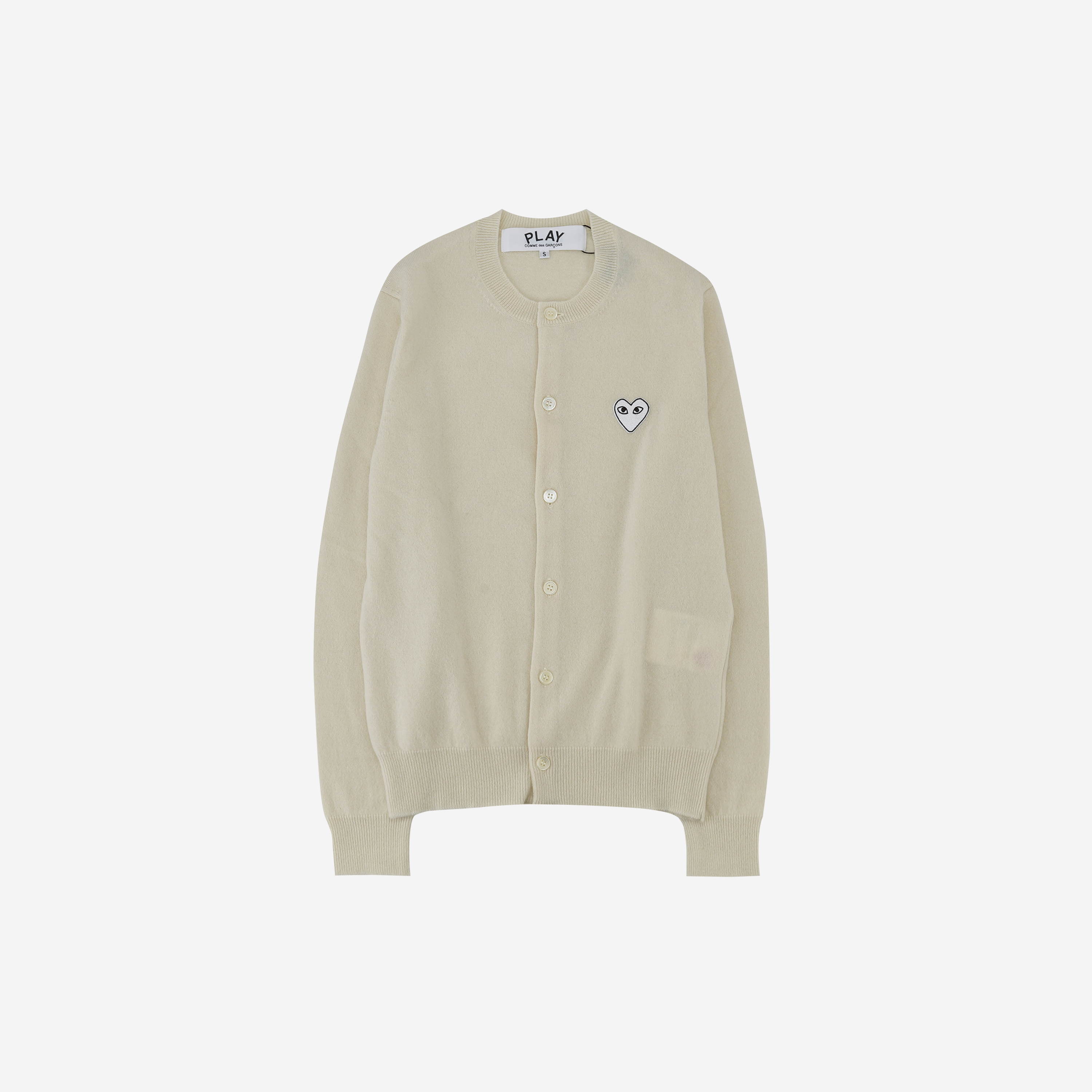 플레이 꼼데가르송 화이트 하트 니트 가디건 내츄럴