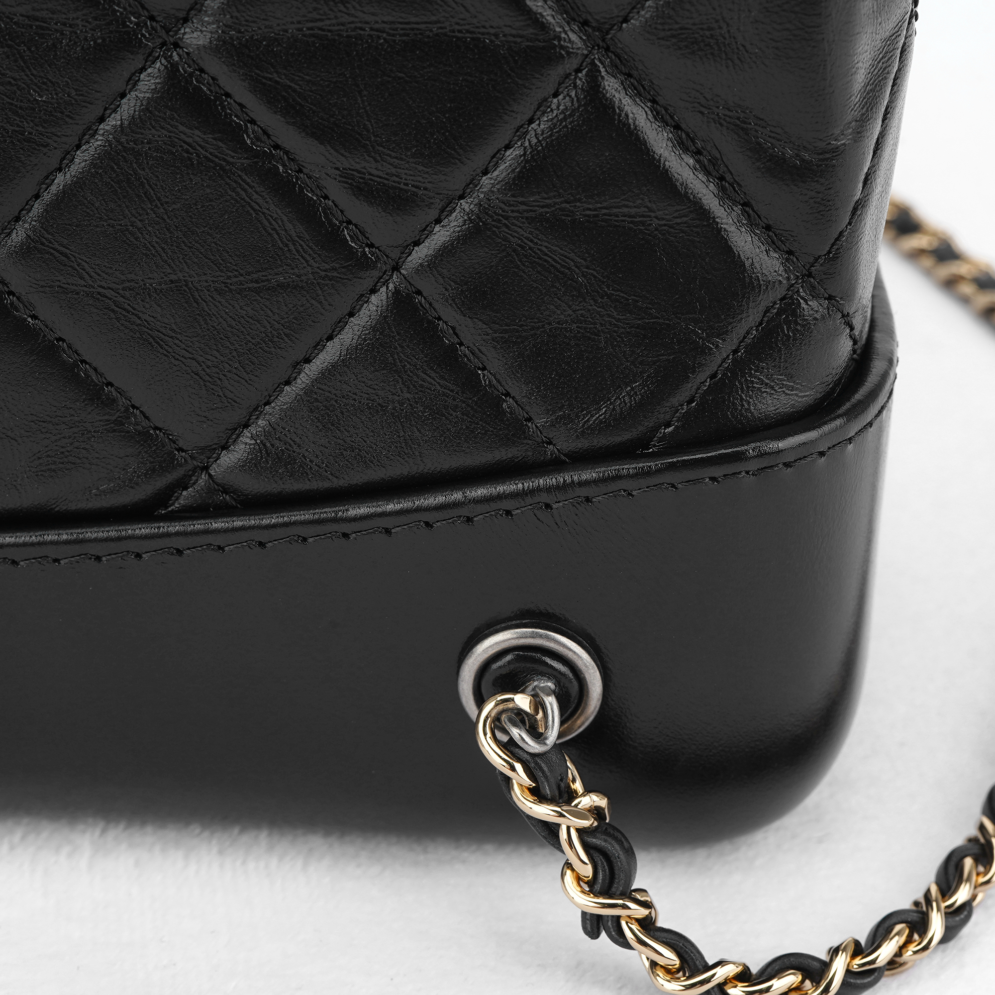 샤넬 가브리엘 백팩 스몰 빈티지 카프스킨 & 골드 실버 메탈 블랙