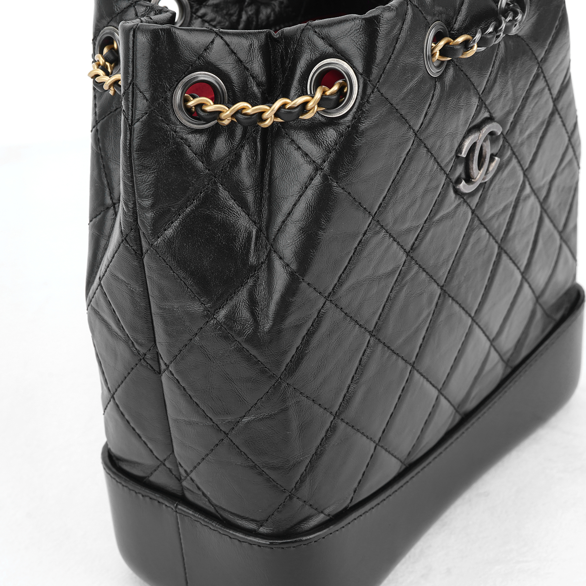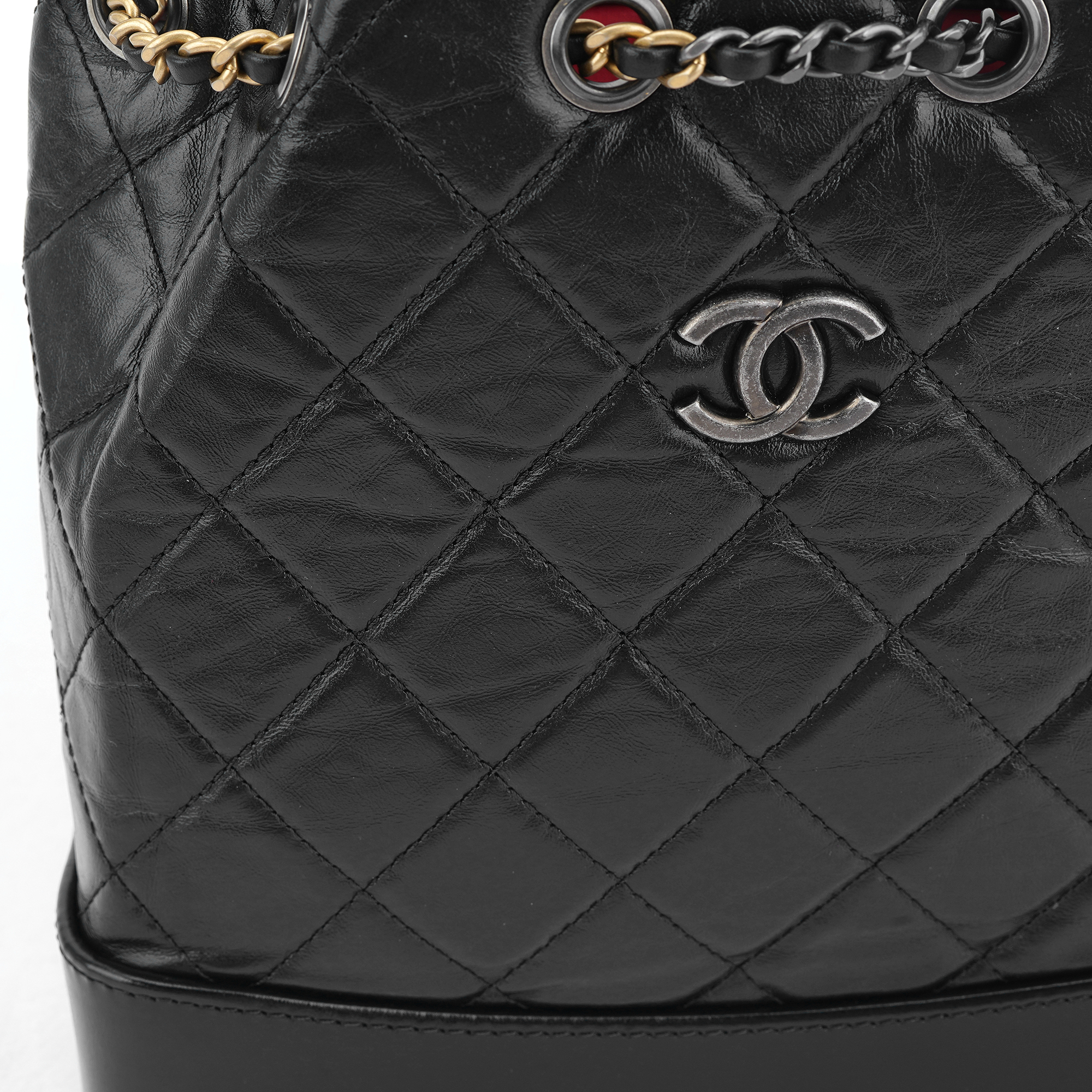 Chanel Small Gabrielle Backpack Aged Calfskin & Gold Silver Black