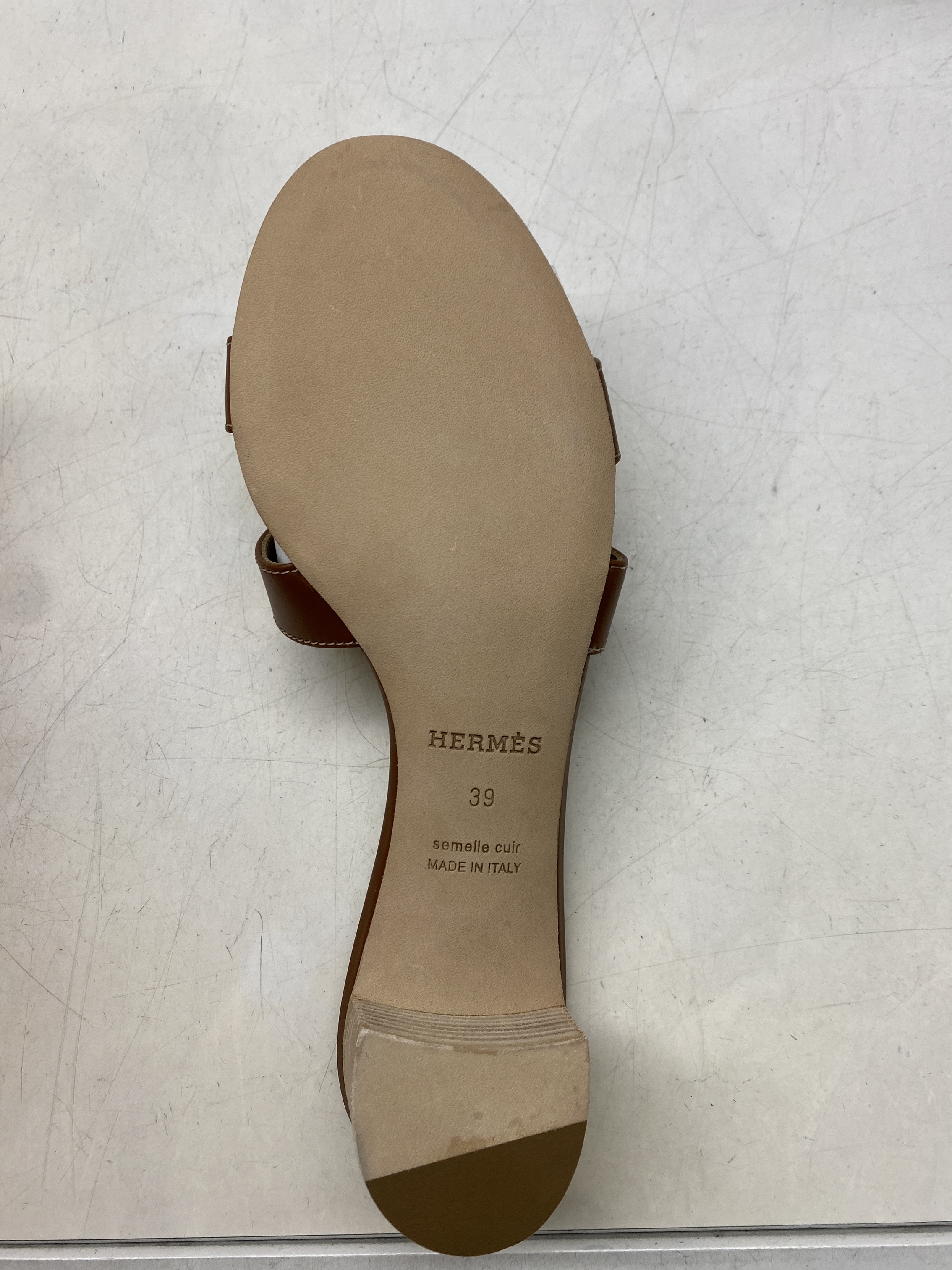 (W) Hermes Oasis Sandal Calfskin & Gold Piqures Ecrues