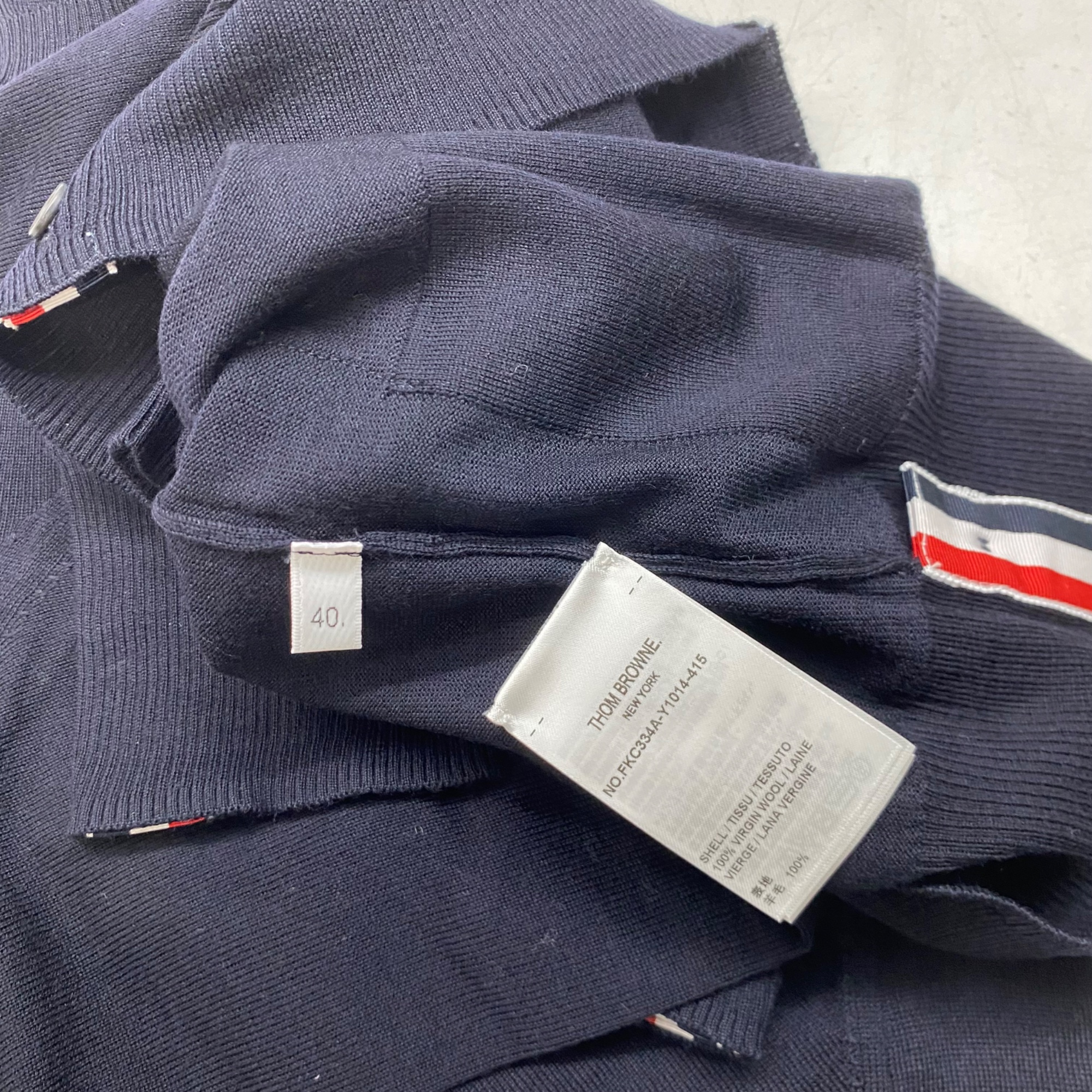 (W) 톰브라운 서스테이너블 파인 메리노 울 사선 릴렉스 핏 브이넥 가디건 네이비