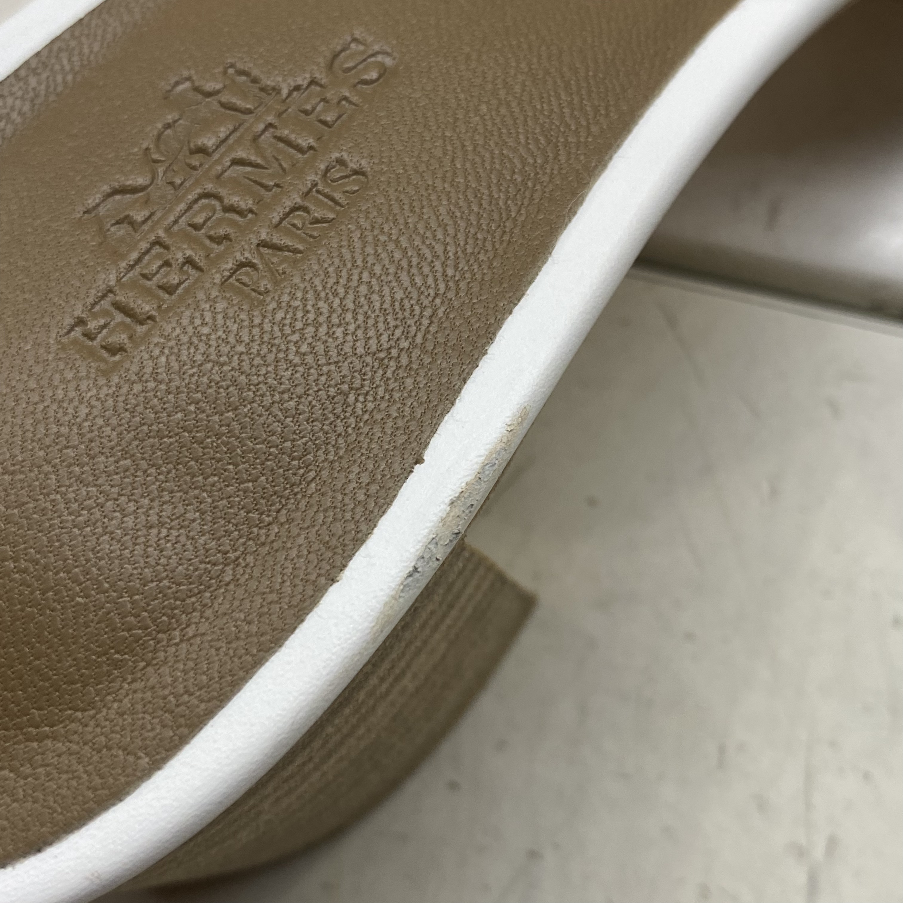 (W) Hermes Oasis Sandal Calfskin & Blanc Piqures Havane