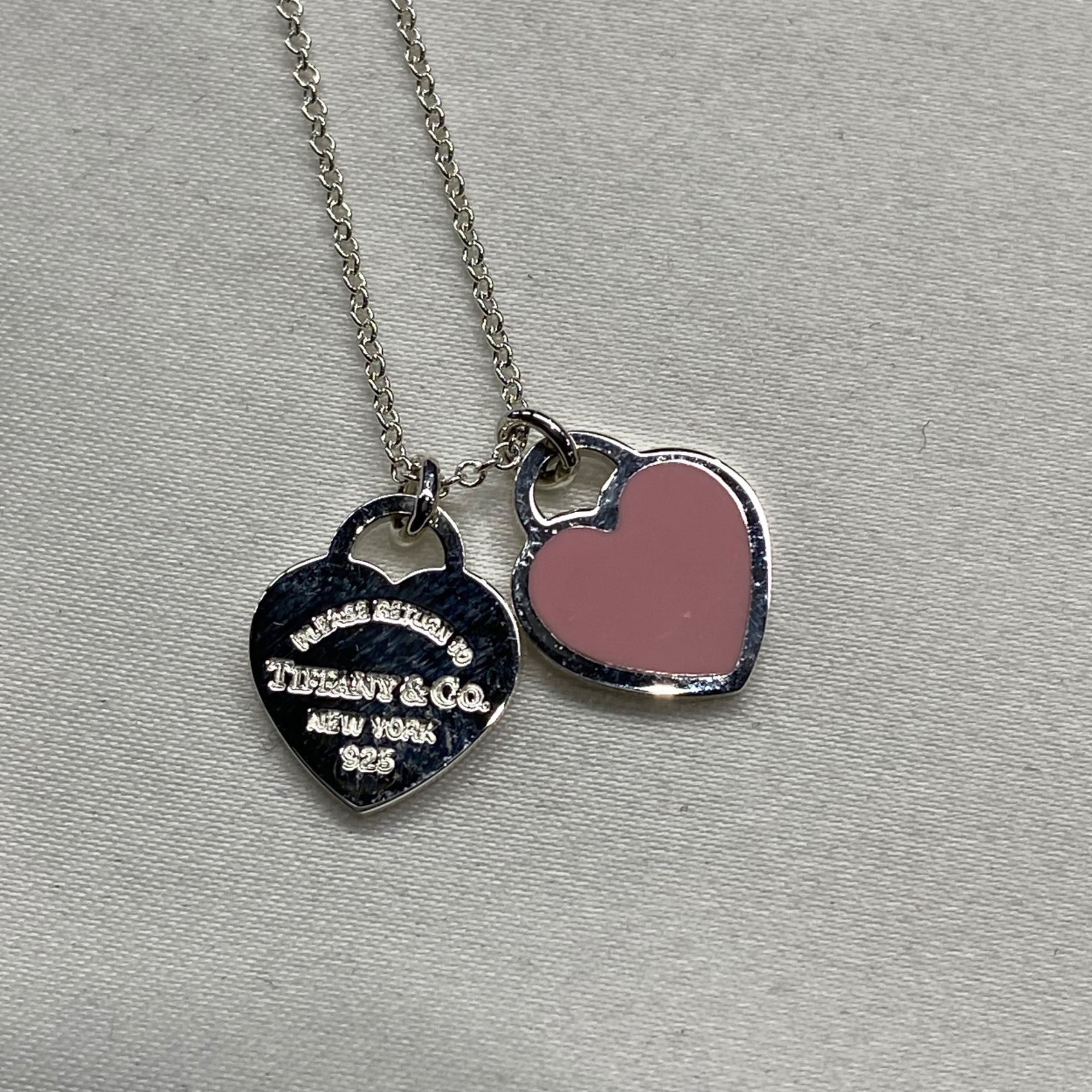 Tiffany & Co. Return To Tiffany Pink Double Heart Tag Pendant Mini Silver (16in)