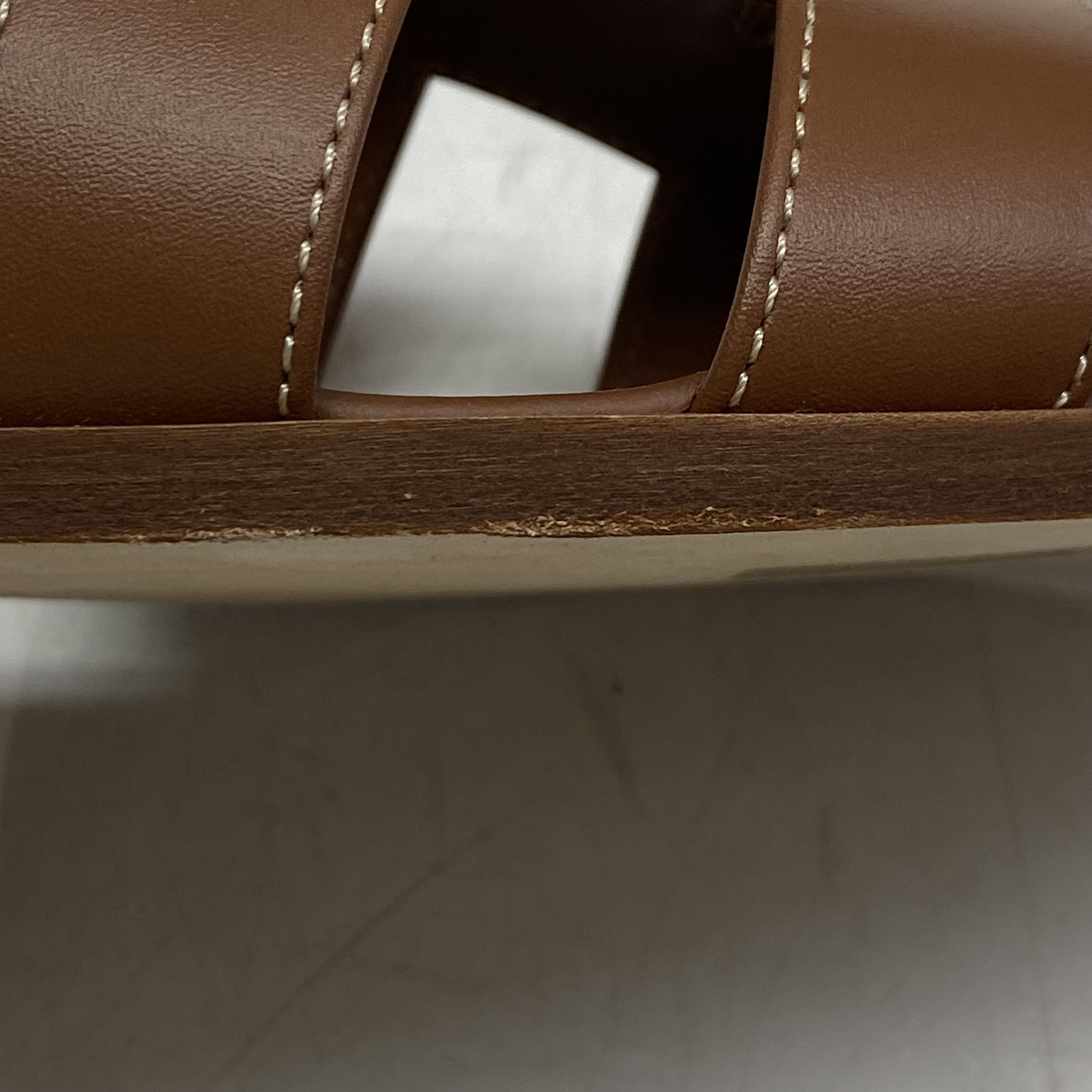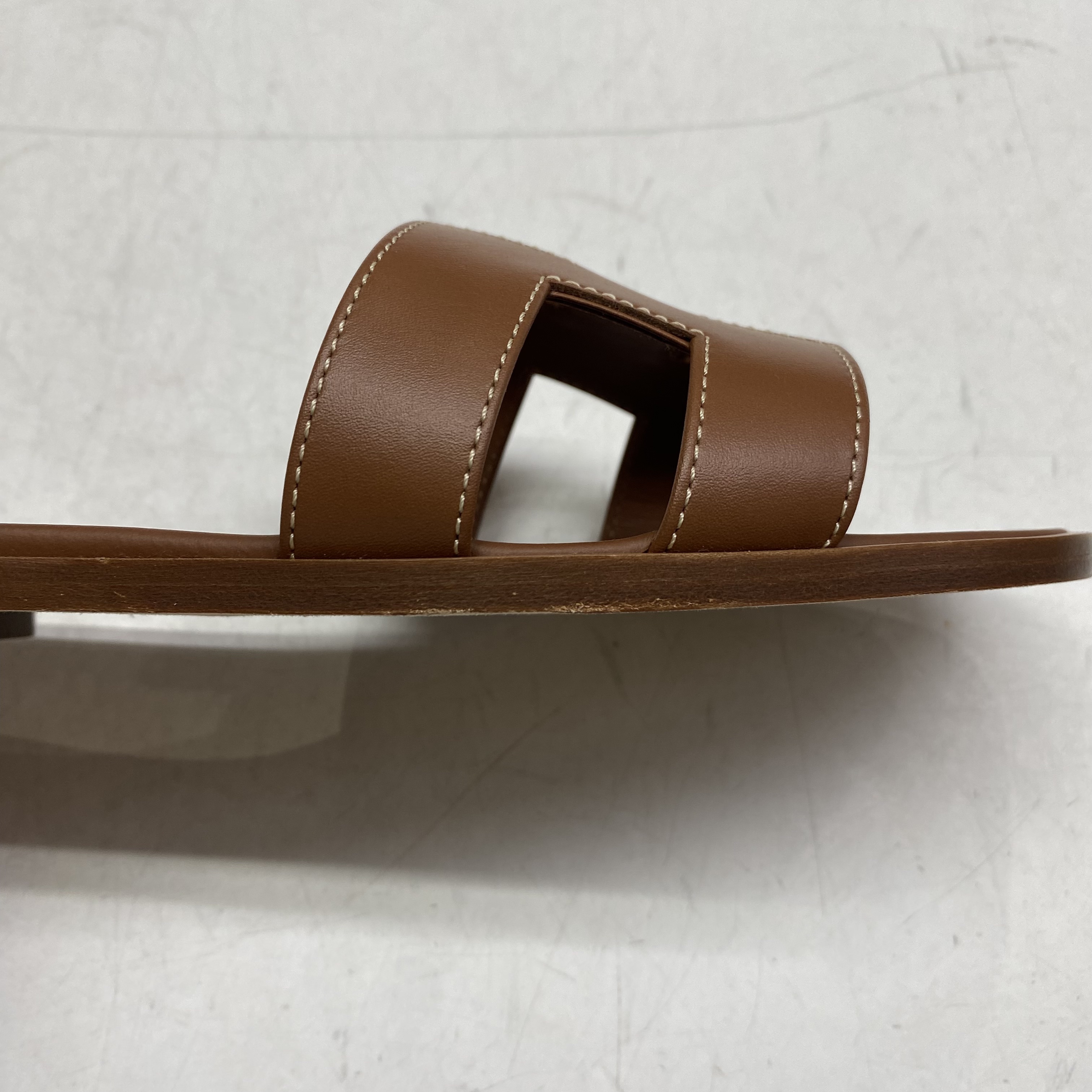 (W) Hermes Oran Sandal Calfskin & Gold Piqures Ecrues