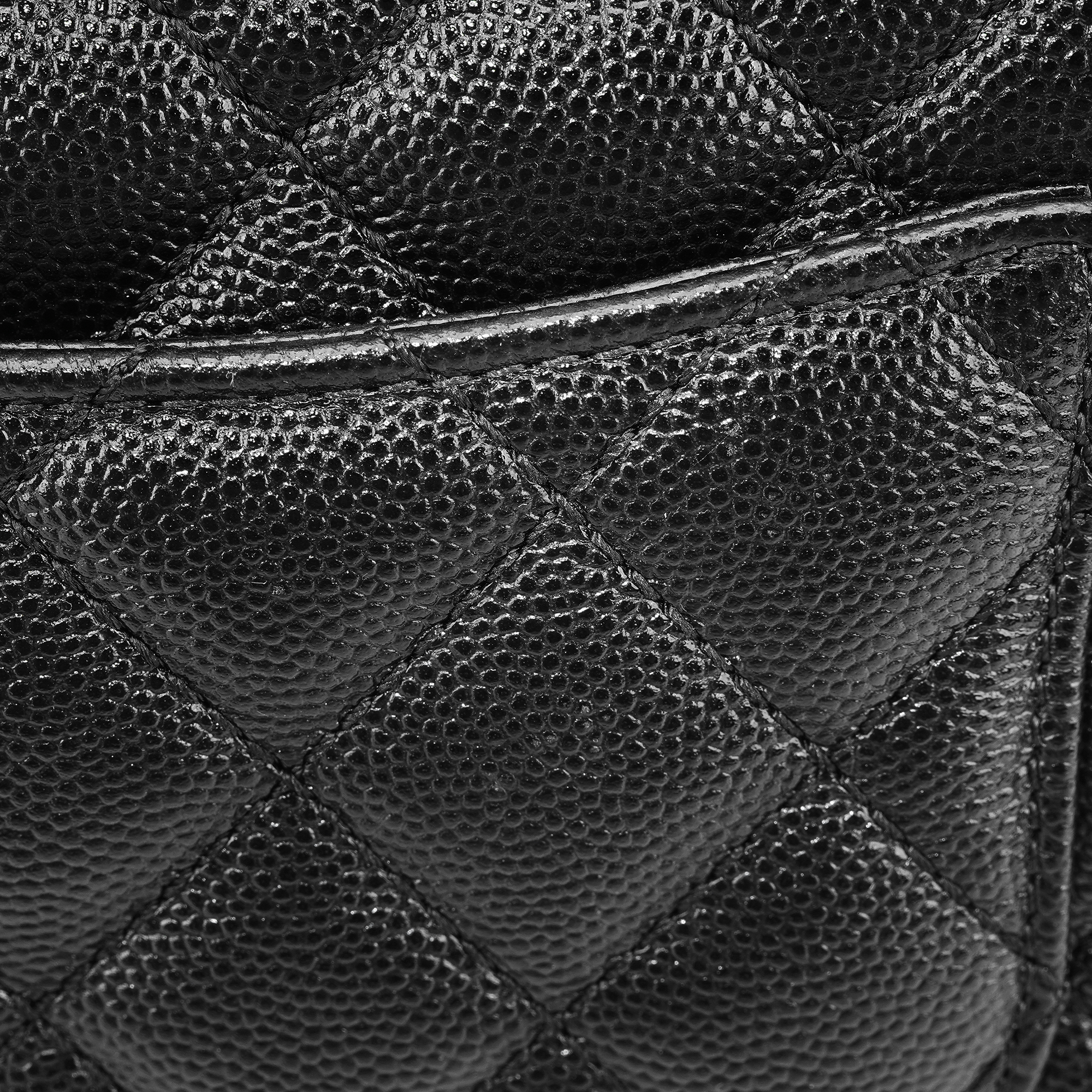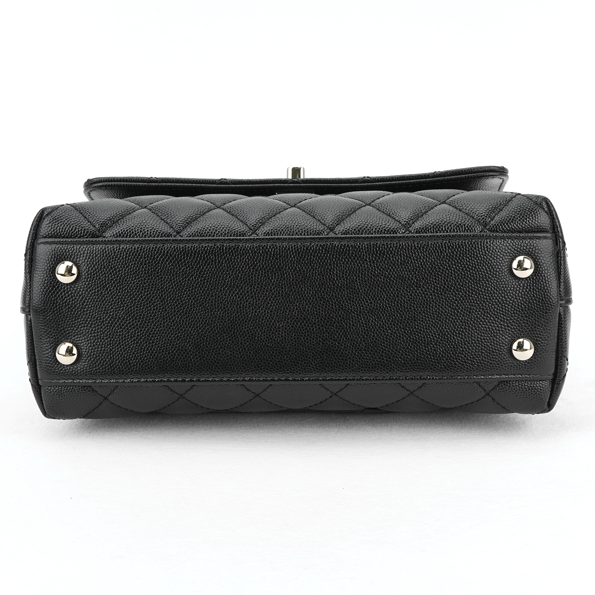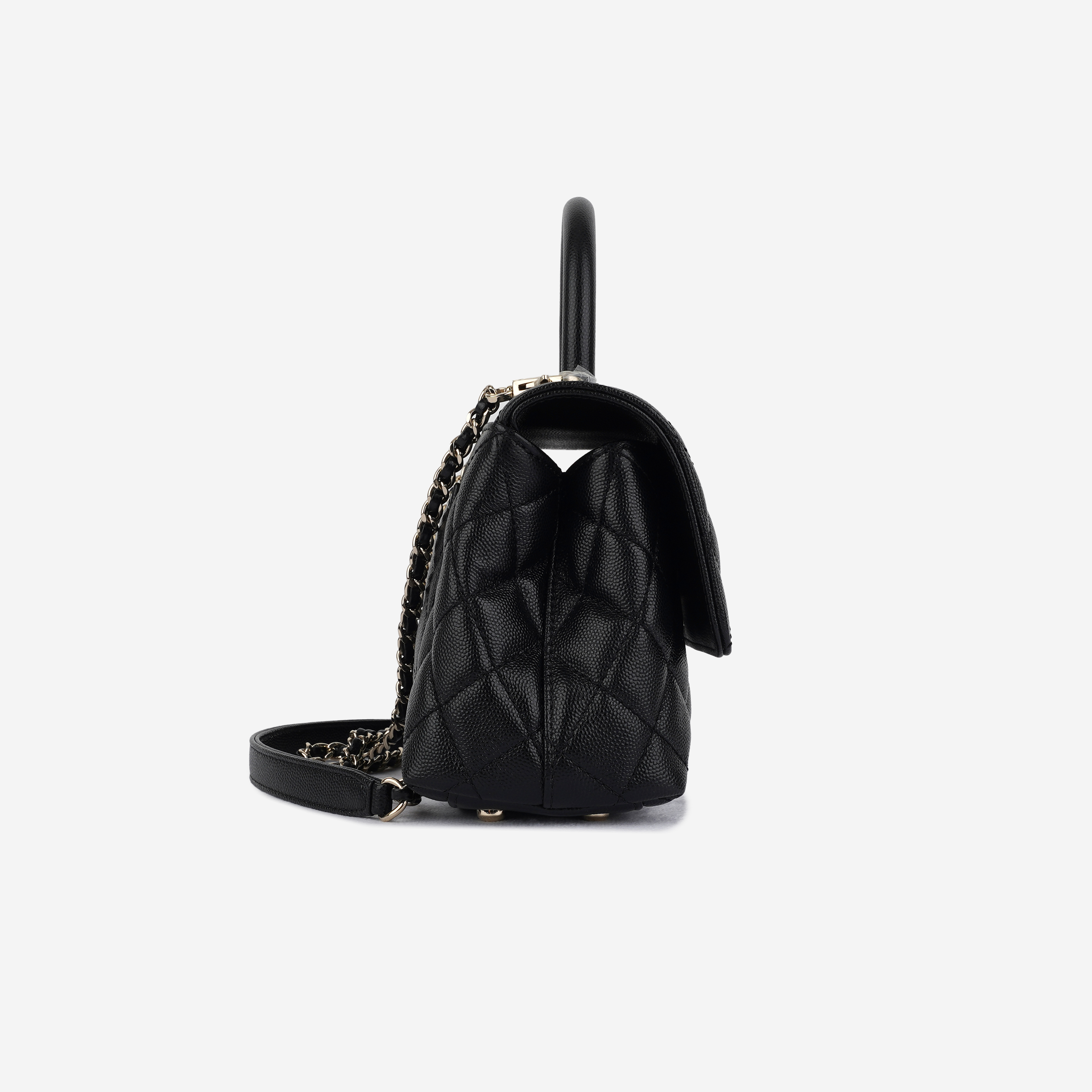 샤넬 핸들 장식의 스몰 플랩백 그레인드 카프스킨 & 골드 메탈 블랙