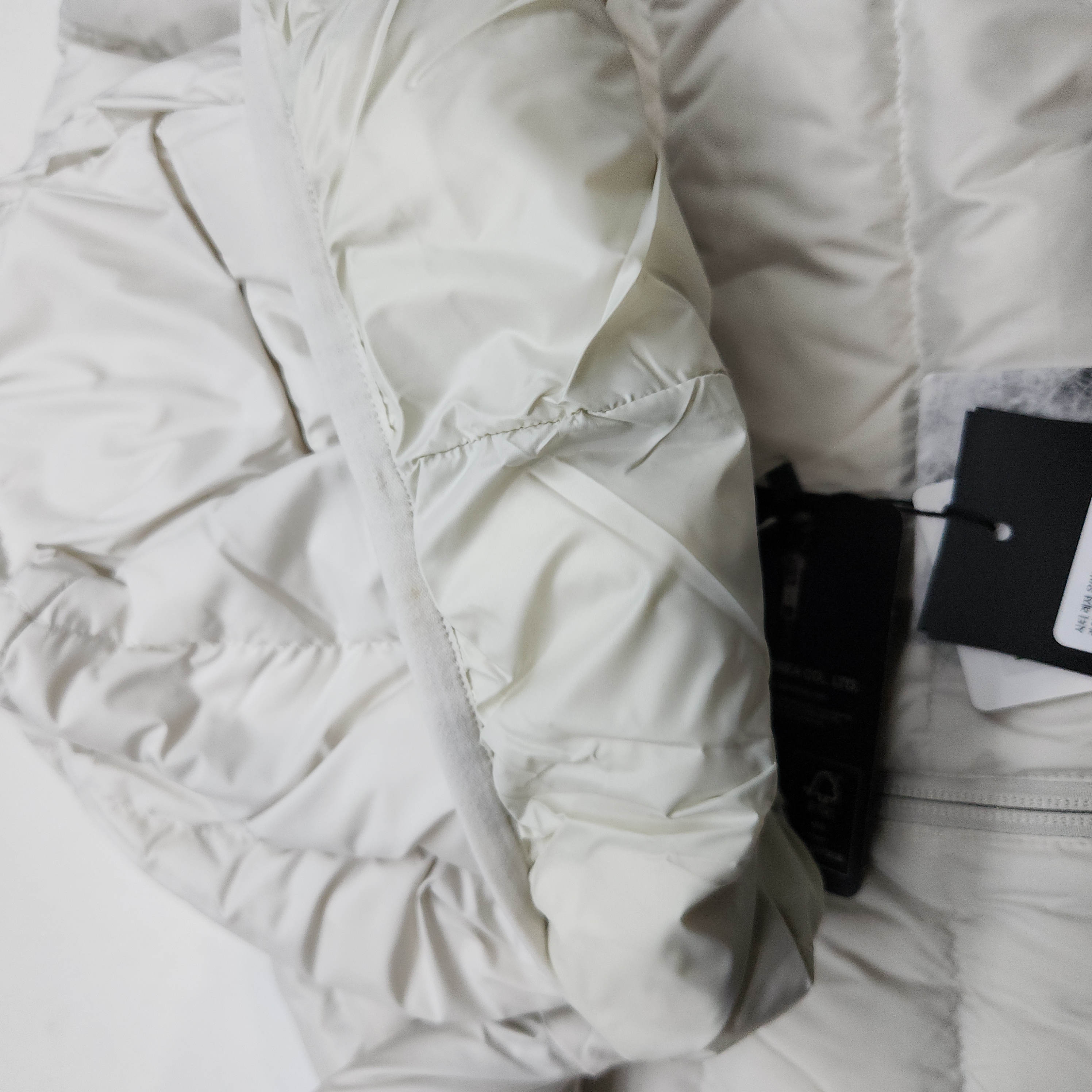 (W) 무신사 스탠다드 시티 레저 후디드 라이트 다운 재킷 스톤 화이트