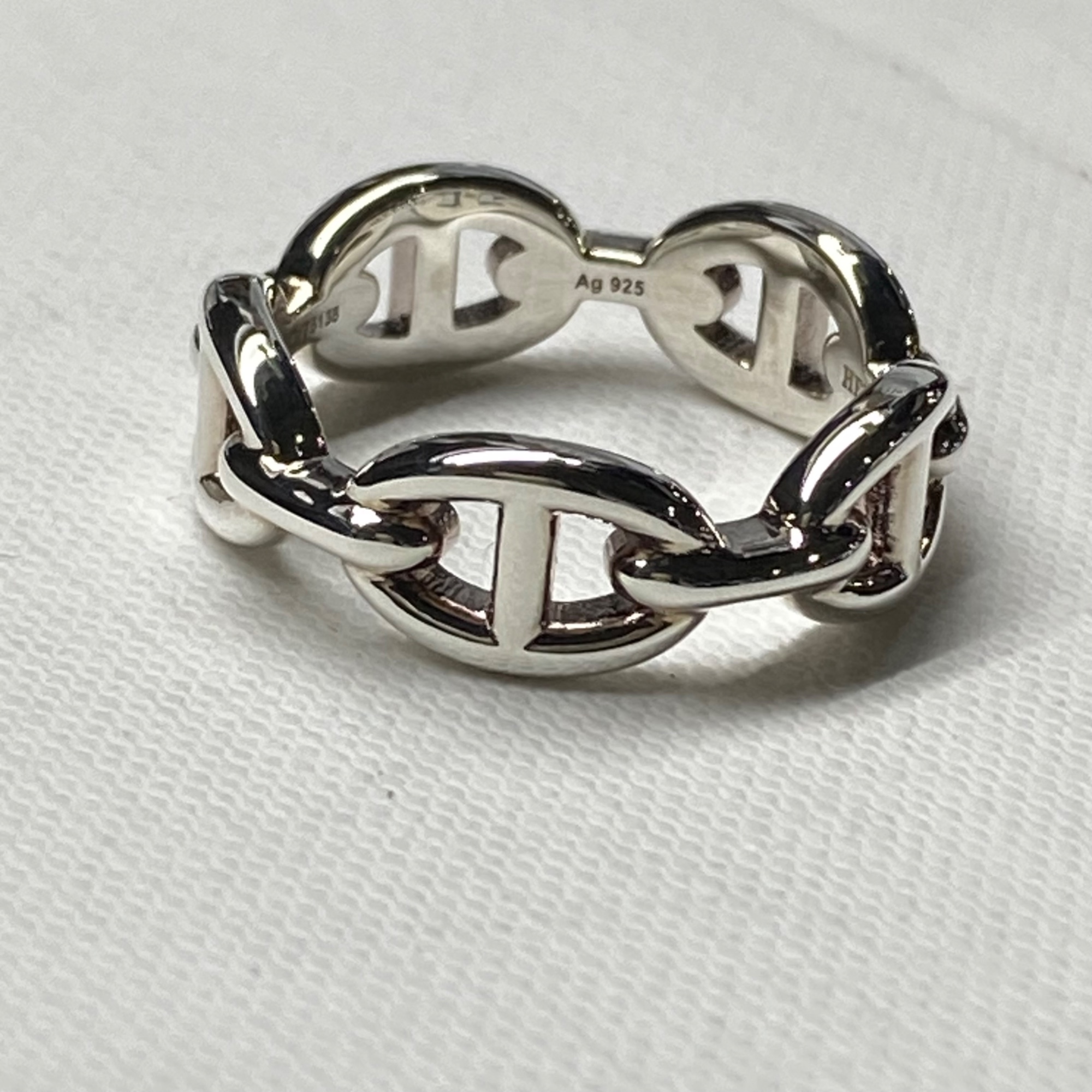 (W) Hermes Small Chaine D'Ancre Enchainee Ring Sterling Silver