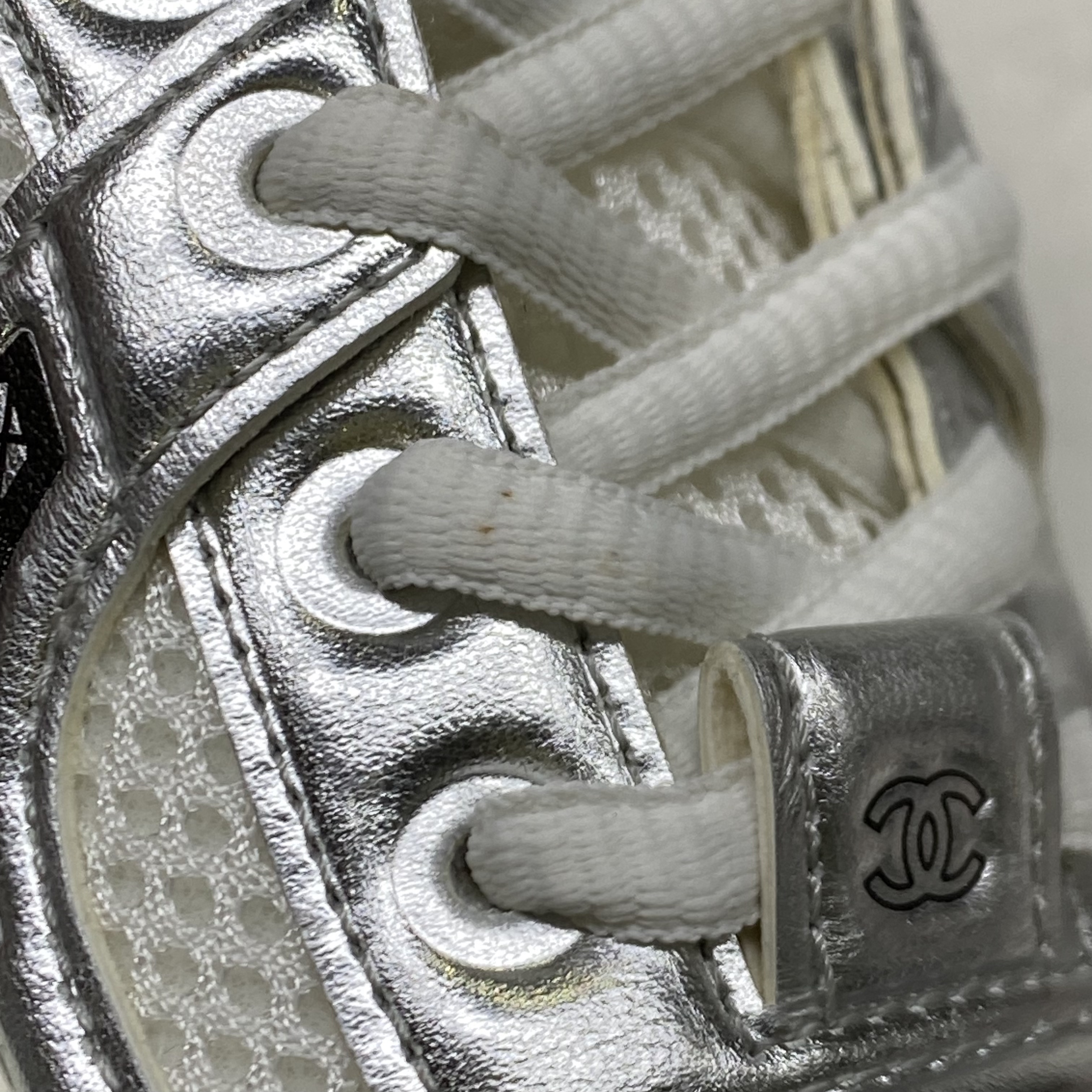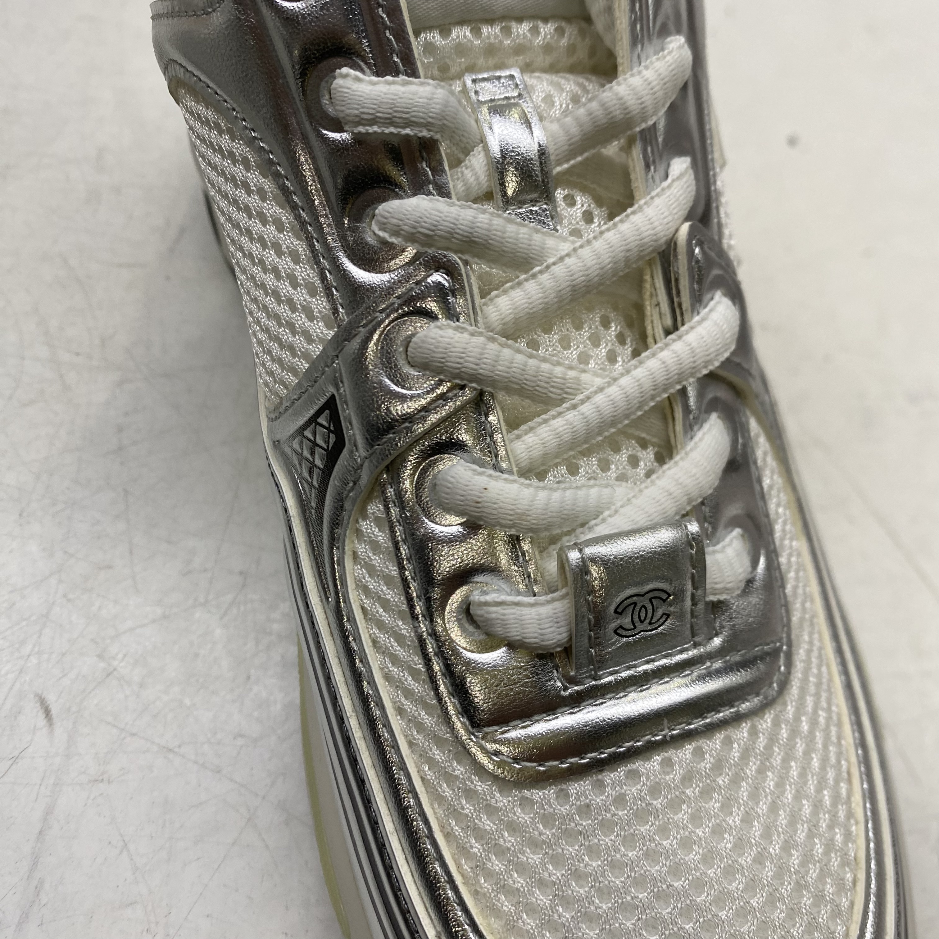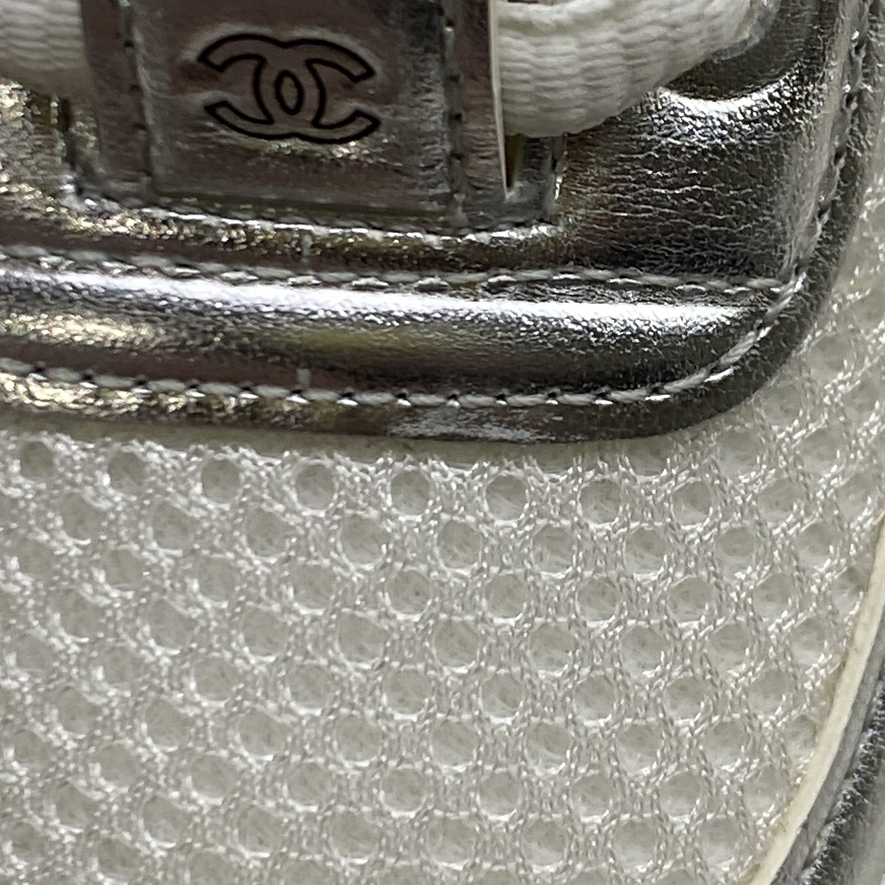 (W) Chanel Sneakers Fabric Laminated & White Silver