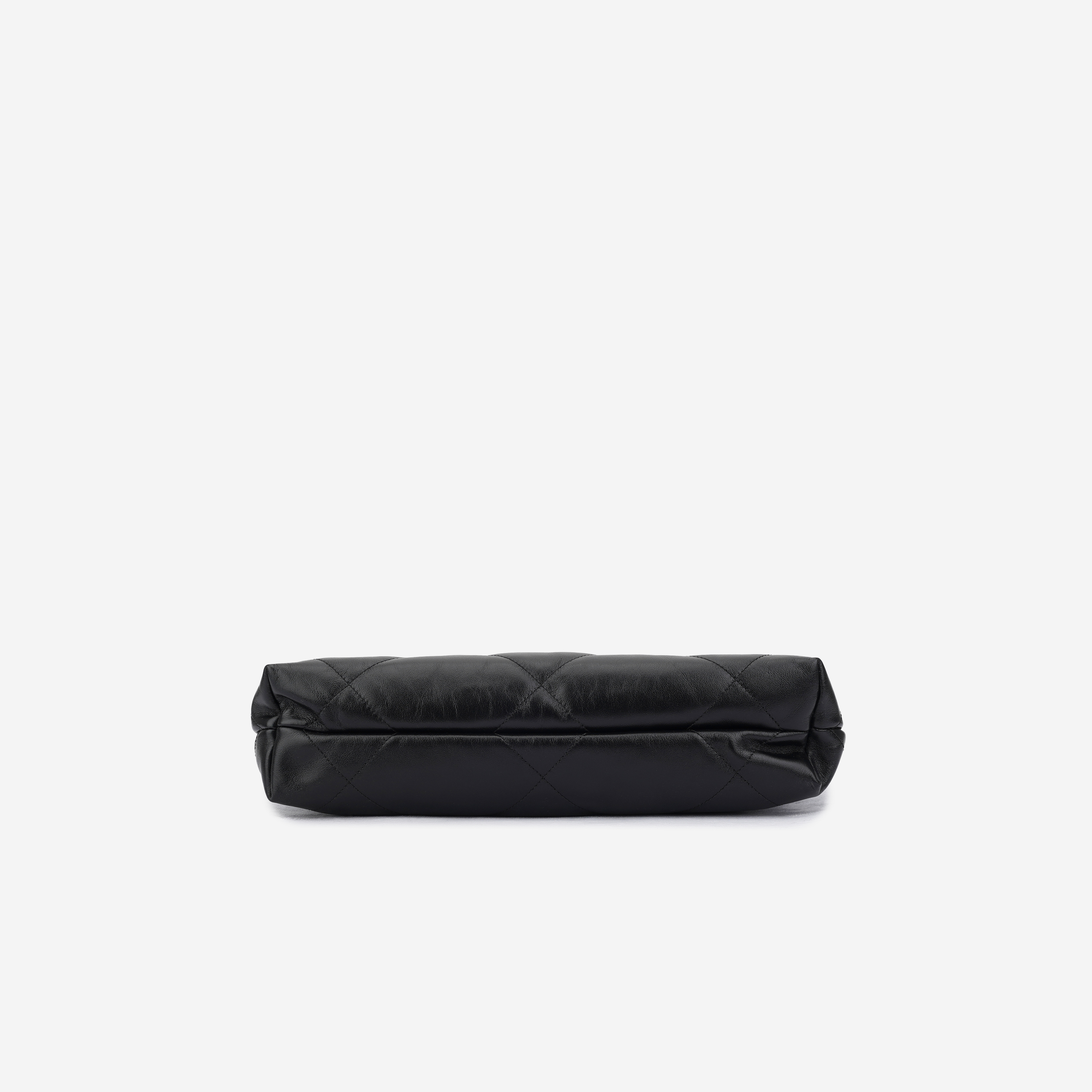 샤넬 22 스몰 핸드백 샤이니 카프스킨 & 실버 메탈 블랙