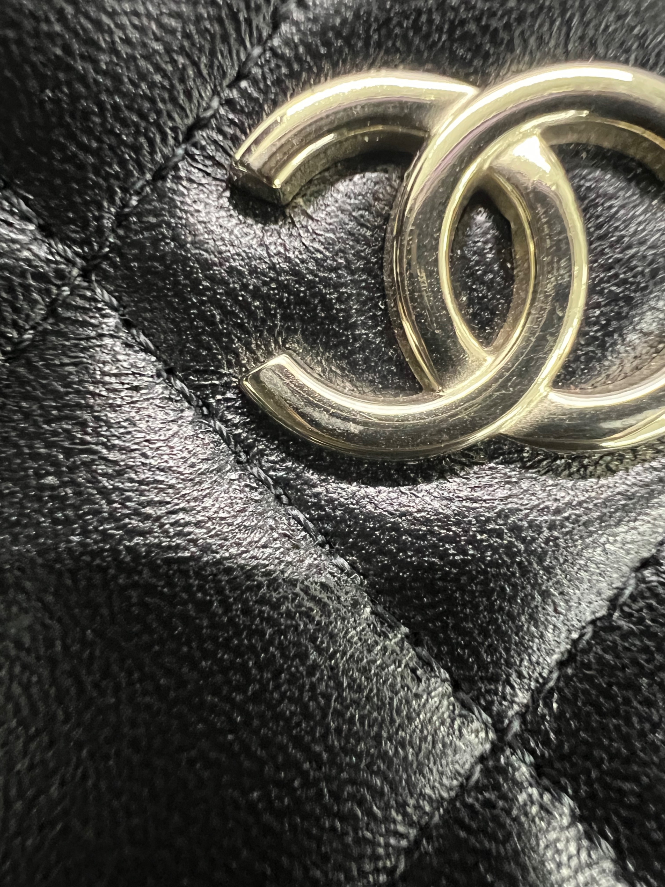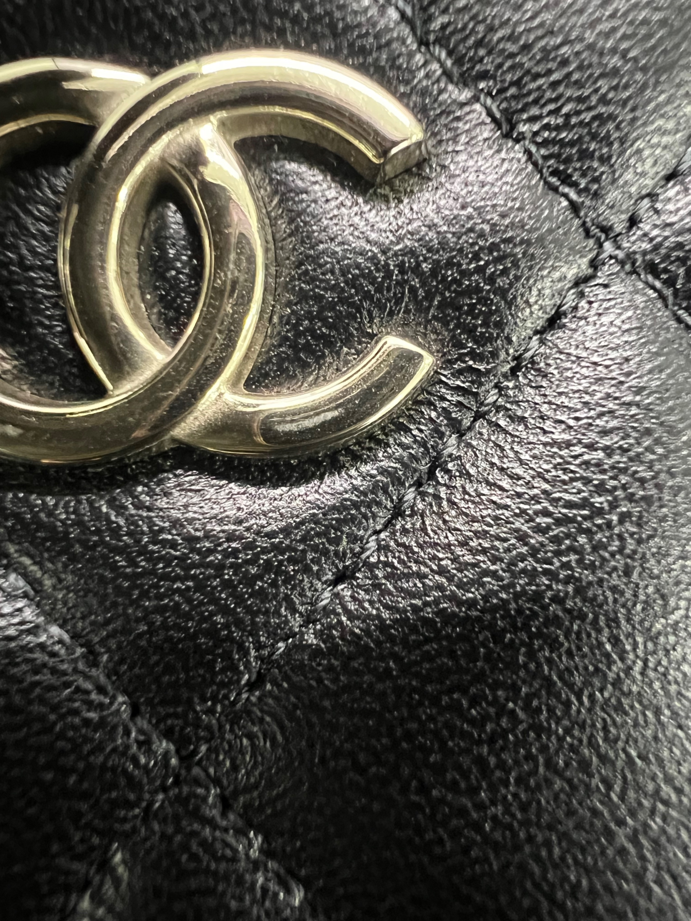 샤넬 체인 코스메틱 케이스 램스킨 & 골드 메탈 블랙 (내부 거울 포함)