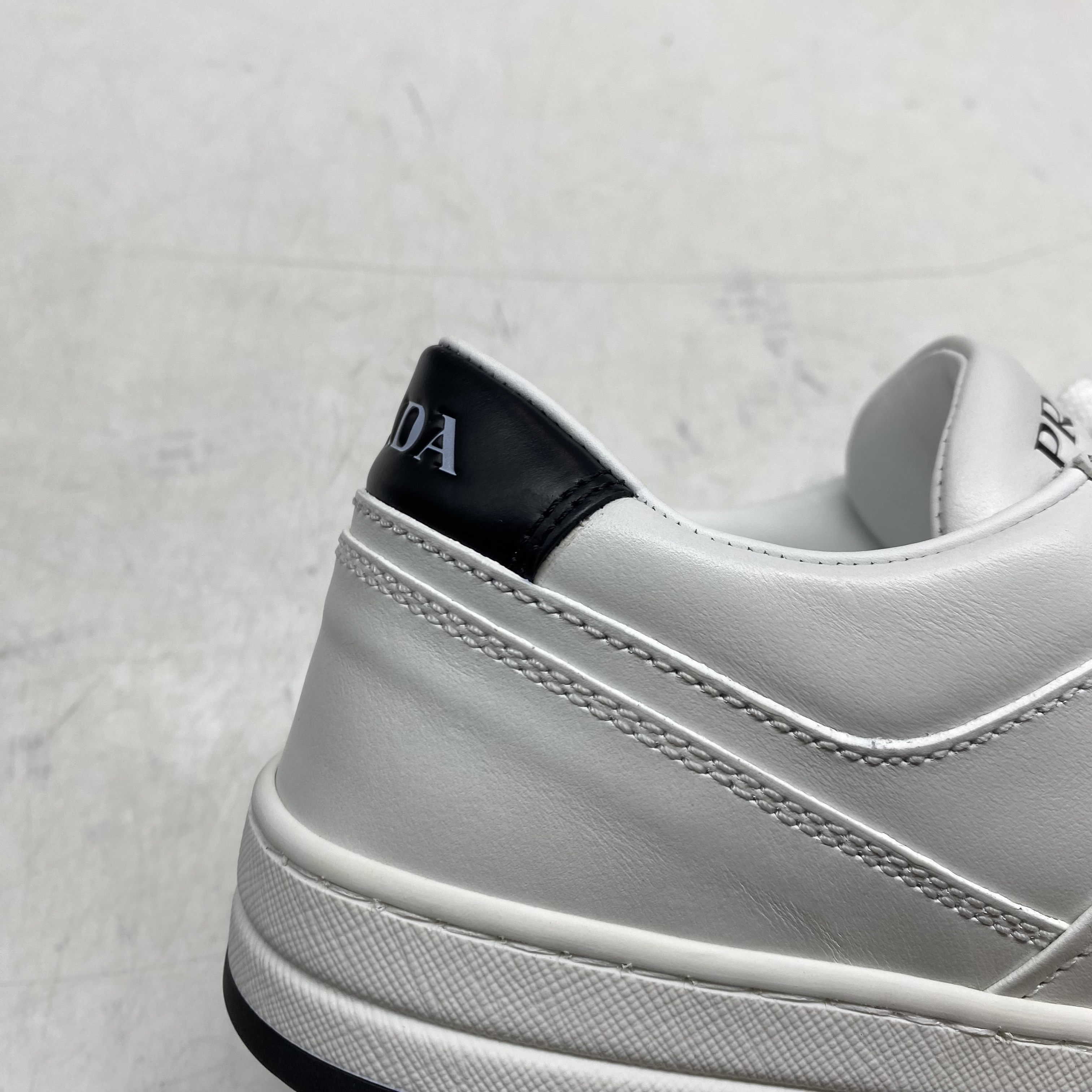 (W) Prada Downtown Perforated Leather Sneakers White Black