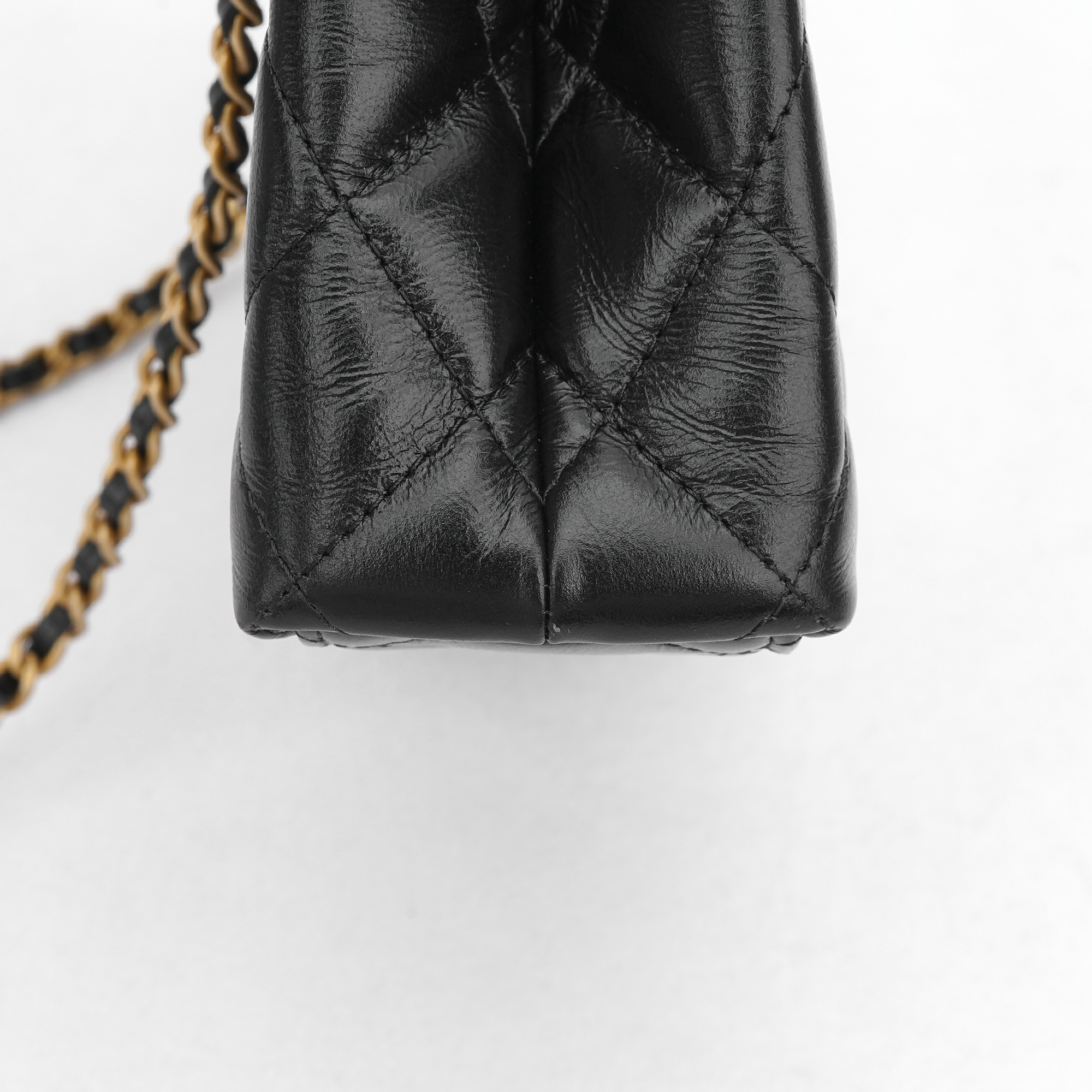 Chanel Mini Shopping Bag Shiny Aged Calfskin & Gold Black