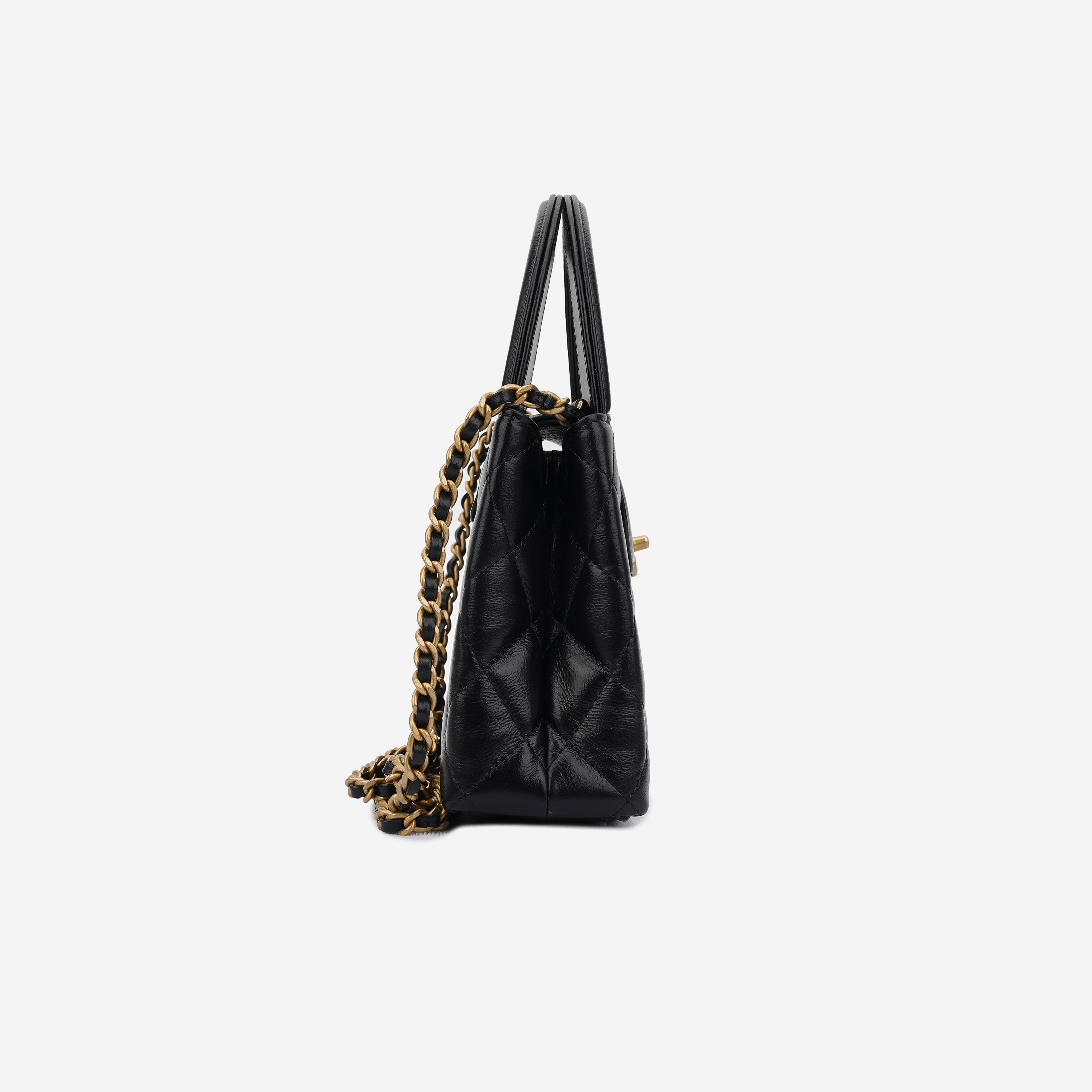 샤넬 미니 쇼핑백 샤이니 빈티지 카프스킨 & 골드 메탈 블랙