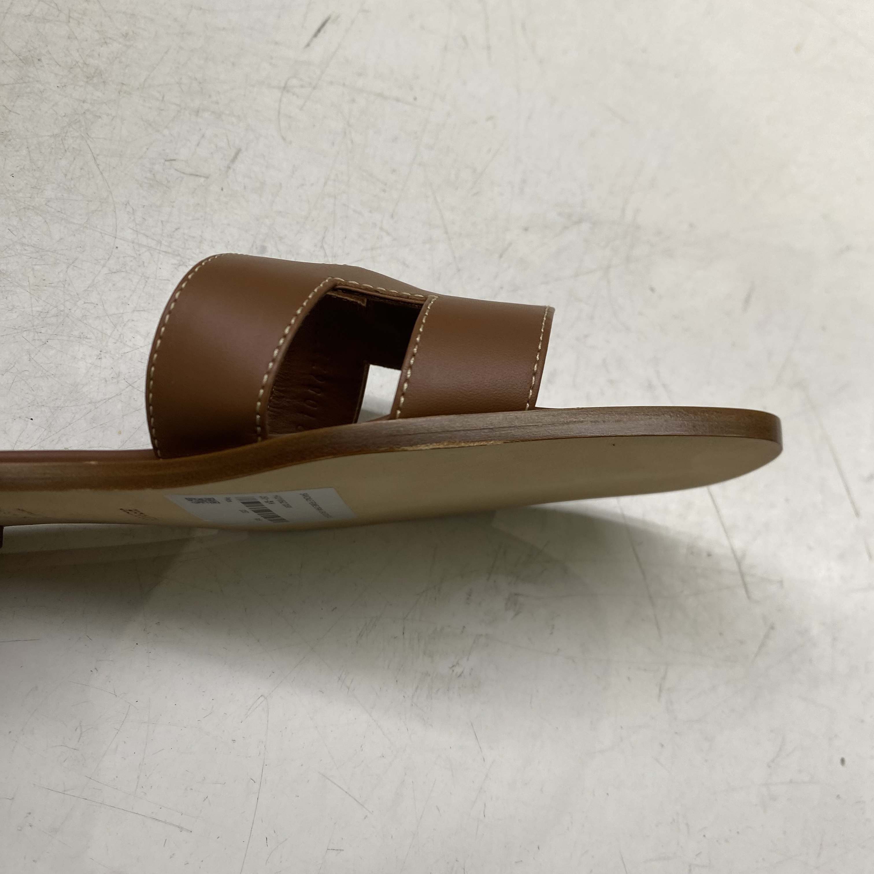 (W) Hermes Oran Sandal Calfskin & Gold Piqures Ecrues