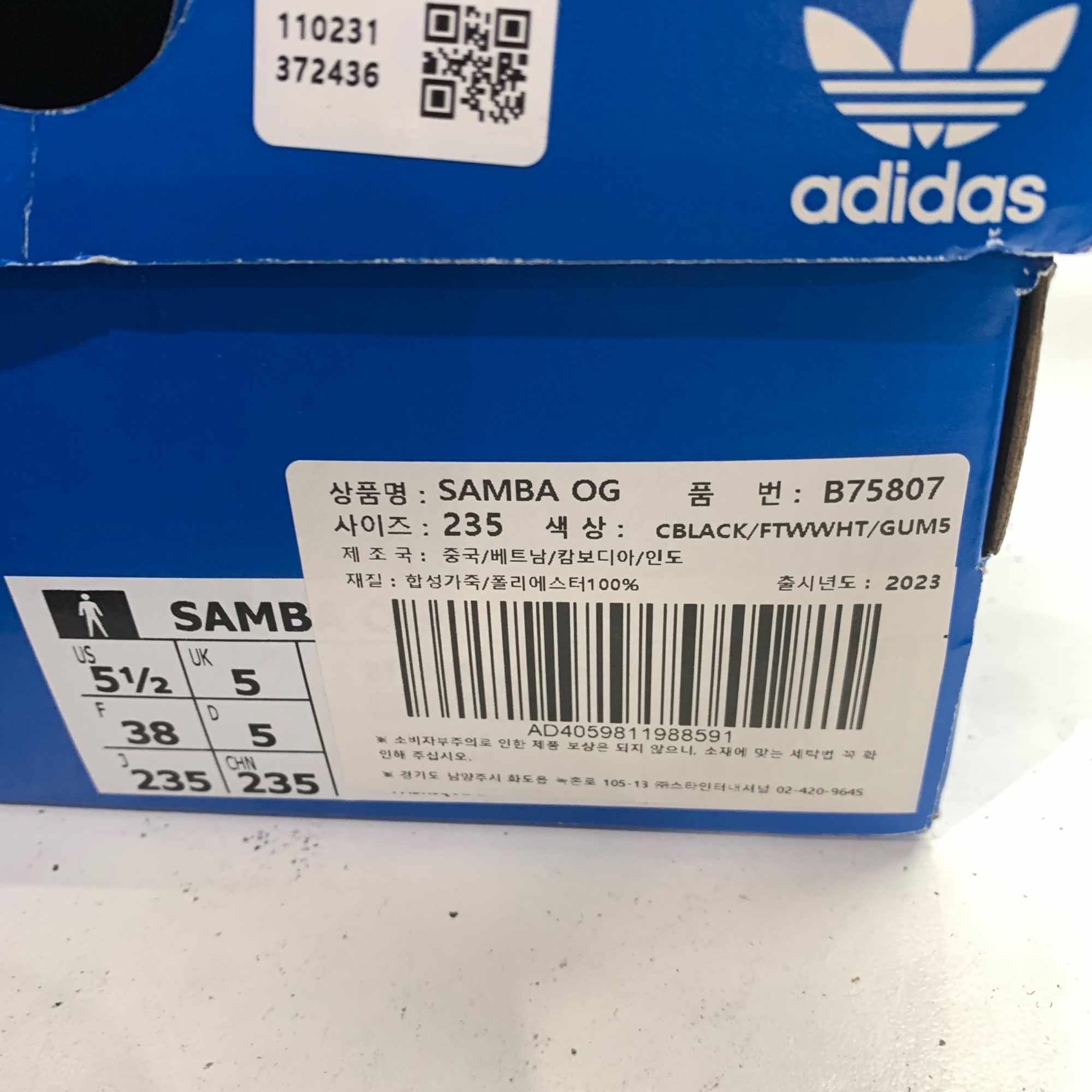 아디다스 삼바 OG 블랙 화이트 검